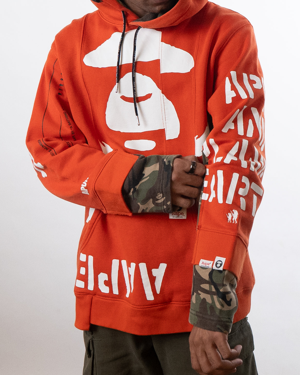 A graphic fleece hoodie defined by the iconic Aape Universe Camo. Vibrant print