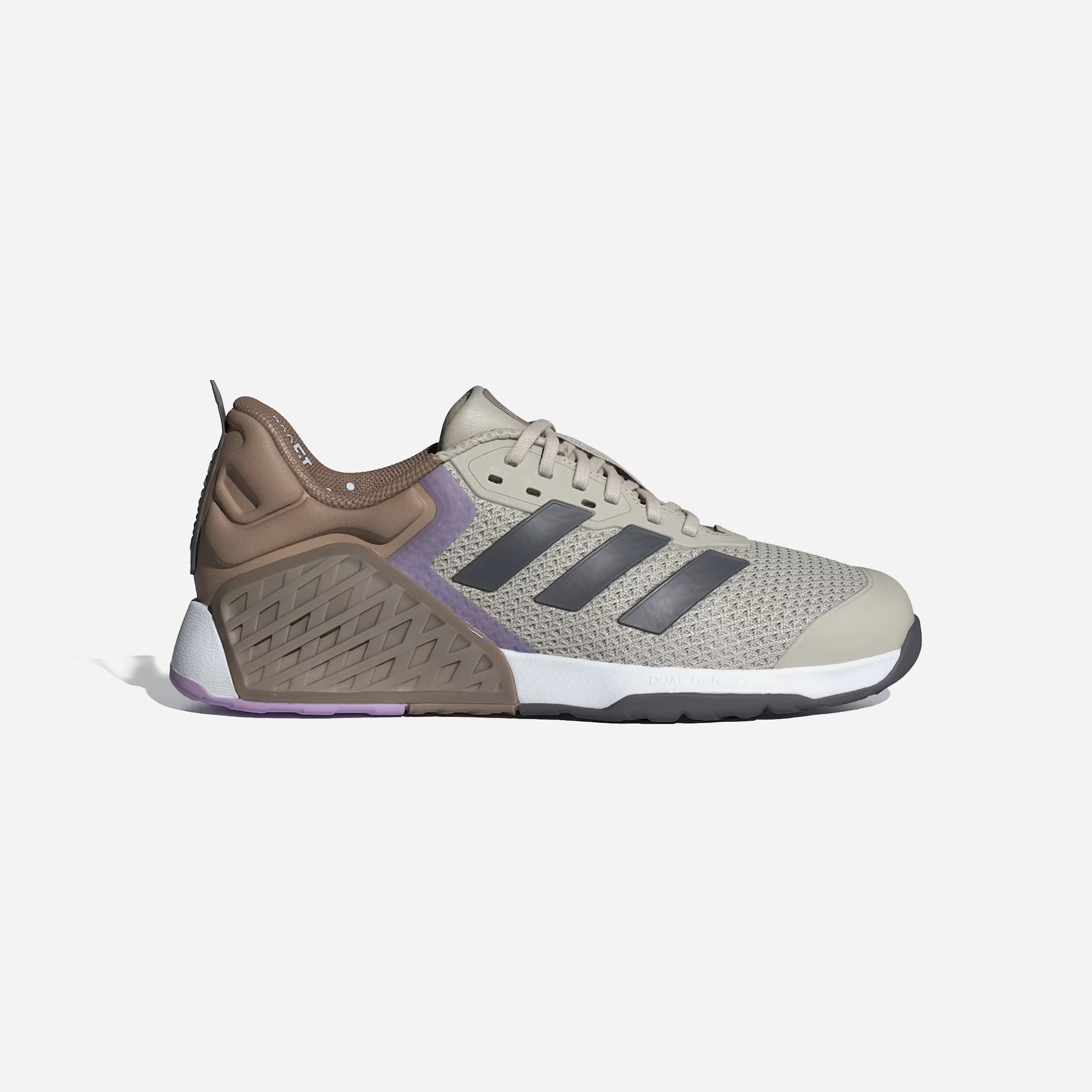 The Adidas Dropset 3 Training Shoes for women in Beige Grey Strata and Powder Plum are designed for stability and support during intense workouts and lifting. These training shoes feature a durable upper and a comfortable fit, offering reliable ground contact for dynamic gym performance. Elevate your fitness routine with this stylish and functional footwear built for power.