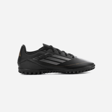 The Adidas F50 Club Tf Core Black Iron Gold is a premium turf soccer shoe built for speed and precision. These stylish cleats feature a soft synthetic upper and a specialized rubber outsole for ultimate traction on artificial surfaces.