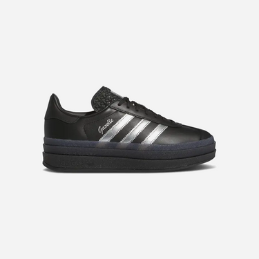 The Adidas Gazelle Bold Pride Pabllo Vittar Core Black Silver Metallic Lucid Pink celebrates individuality and self expression with vibrant style. Crafted with a premium suede upper in core black, this bold edition features eye catching silver metallic accents and vivid lucid pink details that honor Pride. Designed in collaboration with music icon Pabllo Vittar, the sneaker sits on an elevated stacked sole for a modern twist on the classic Gazelle silhouette. Comfortable and full of attitude, the Adidas Gazelle Bold Pride is perfect for making a statement whether on the streets or at a celebration.