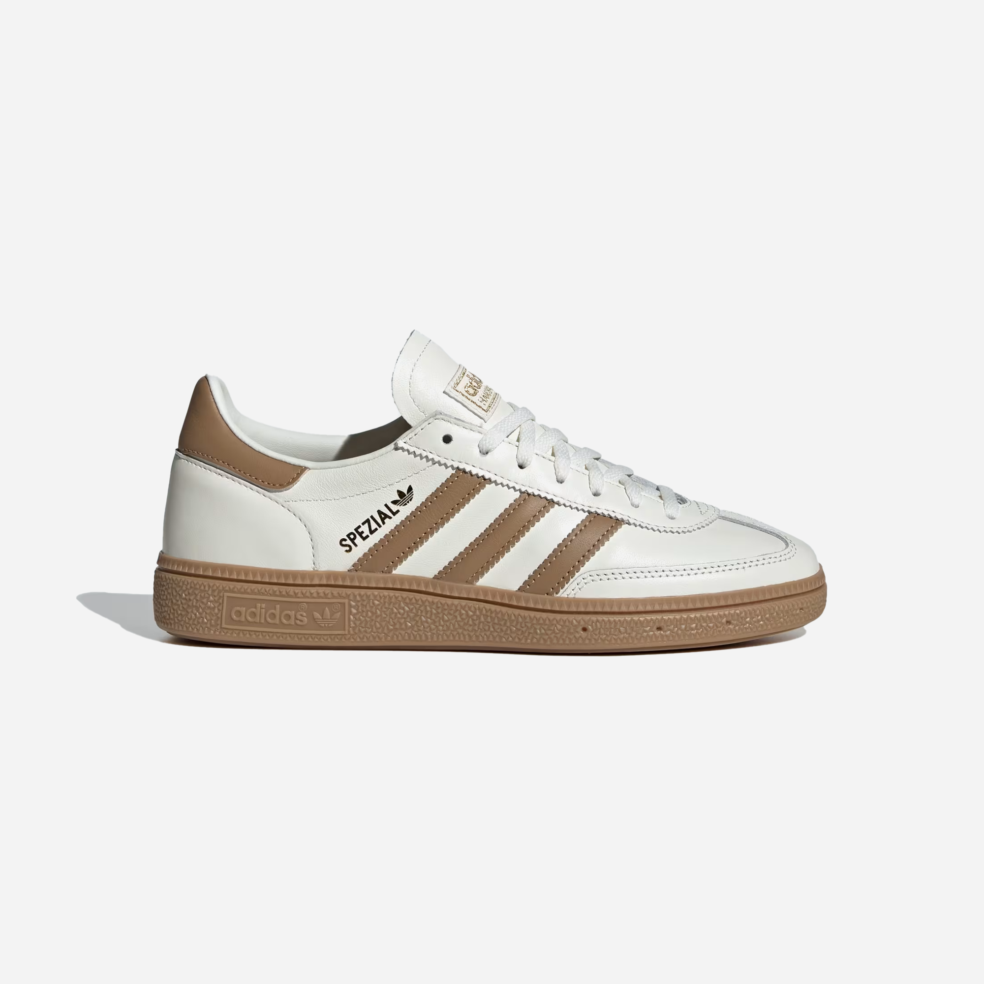 Adidas Handball Spezial in Off White and Cardboard Gum combines classic design with comfort perfect for sports and casual wear enhancing style and performance with durable materials and Timelineless appeal.