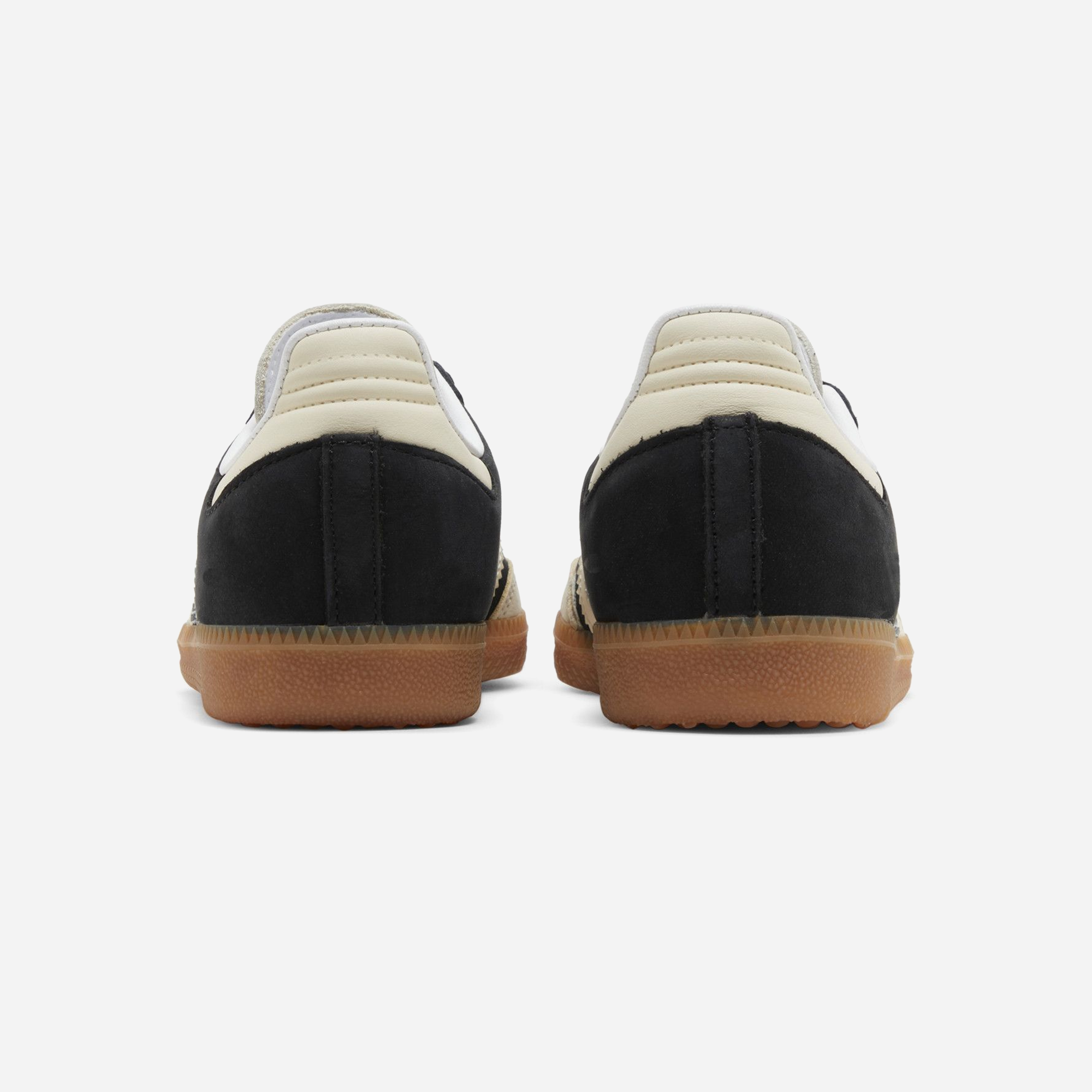 The Adidas Samba OG Black Wonder White showcases a timeless silhouette with black leather upper contrasting white details and gum sole delivering classic style durable comfort and versatility for everyday wear and street fashion.