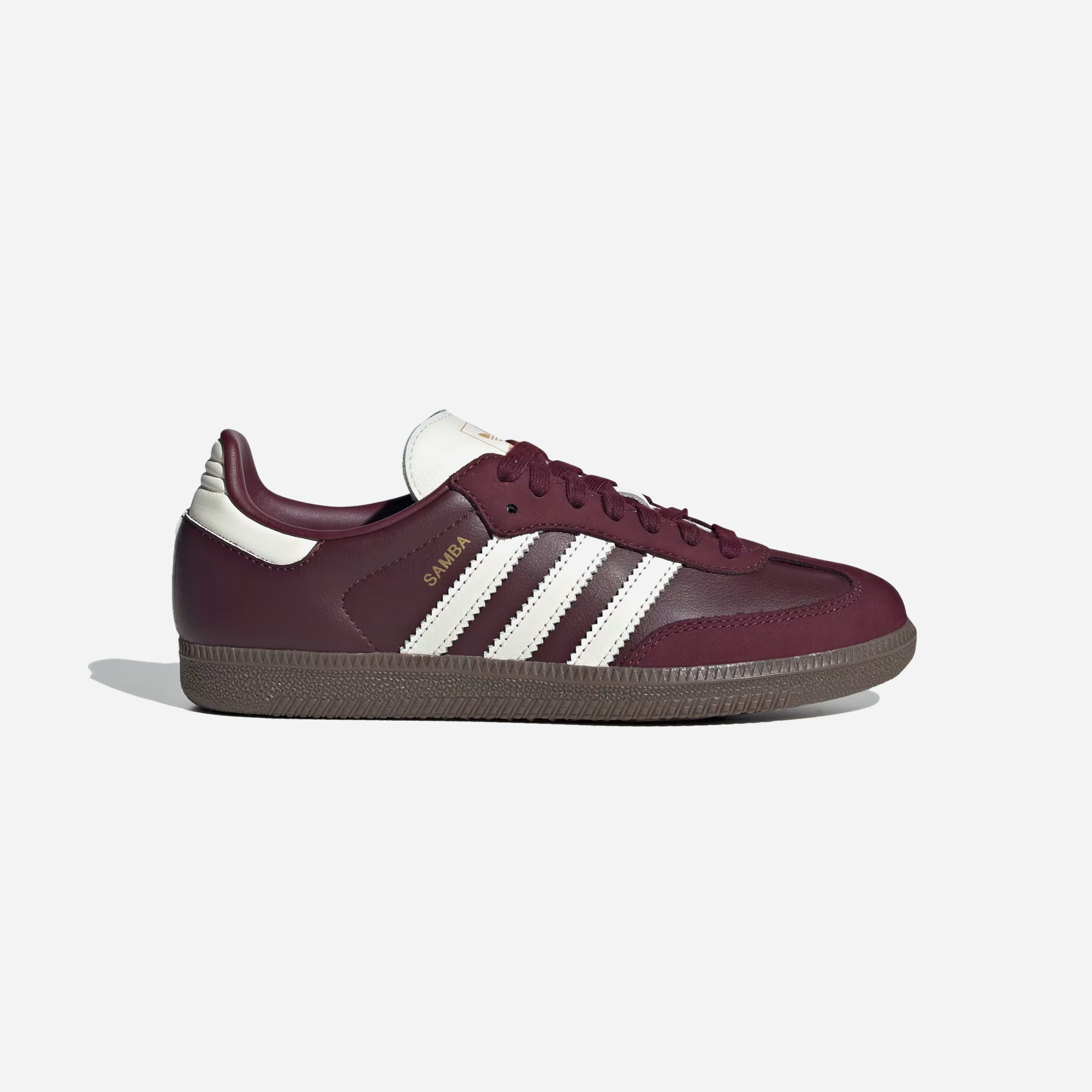 The Adidas Samba OG Maroon Off White Gum blends Timelineless design with premium materials for lasting comfort and style. Featuring a rich maroon color with off white accents and a durable gum sole, these sneakers offer superior grip and versatility for everyday wear or sports activities.