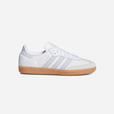 The Samba OG White Halo Blue Gum is a stylish Adidas sneaker with a clean white upper, soft halo blue details, and a classic gum sole. Designed for comfort and everyday wear, it blends vintage appeal with modern streetwear fashion perfectly.