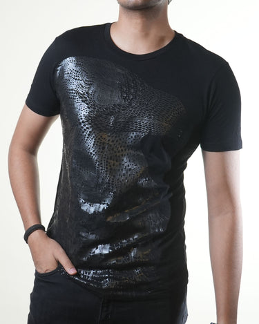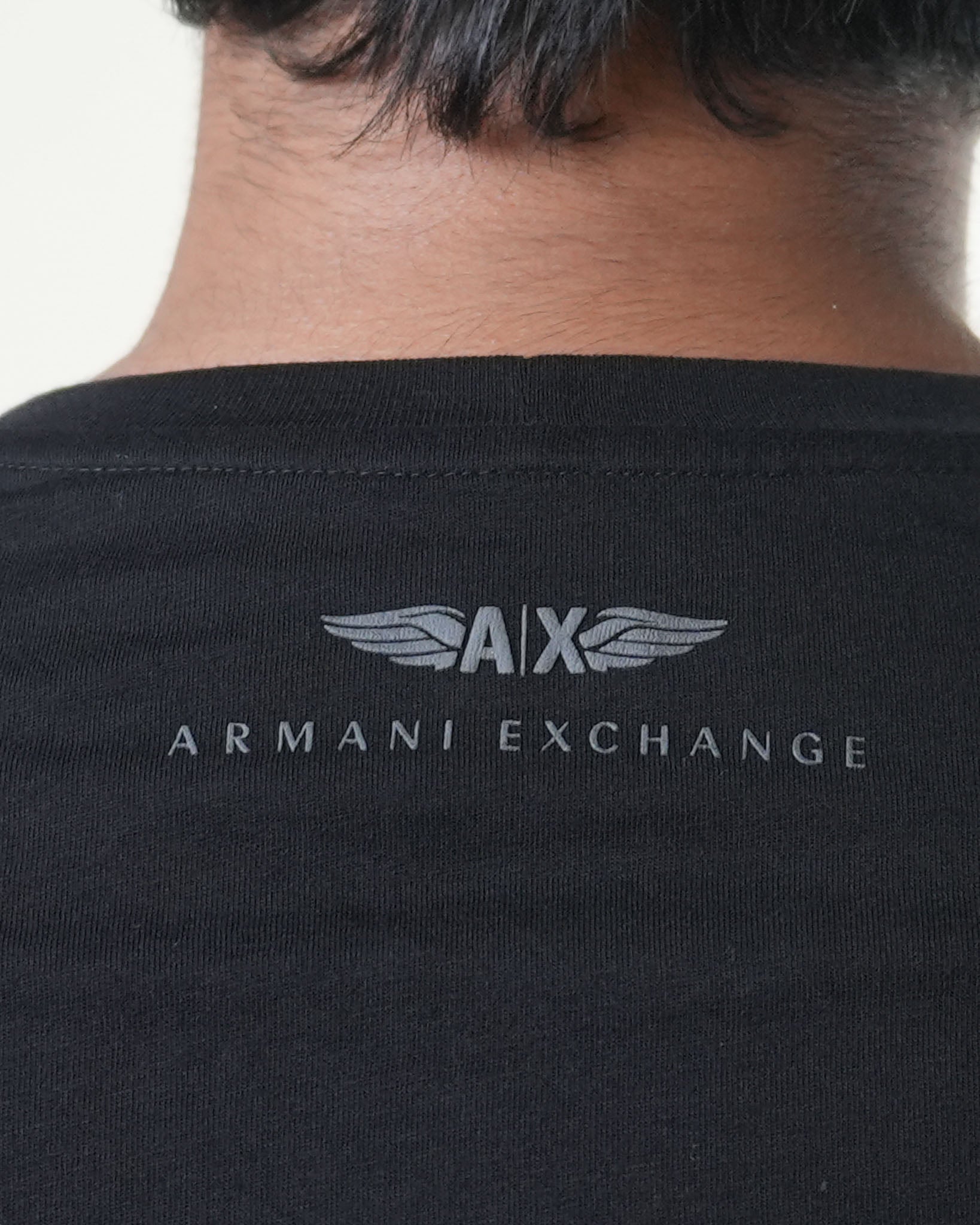 This Armani Exchange black T-shirt features a striking eagle graphic, blending bold style with everyday comfort. Striking eagle