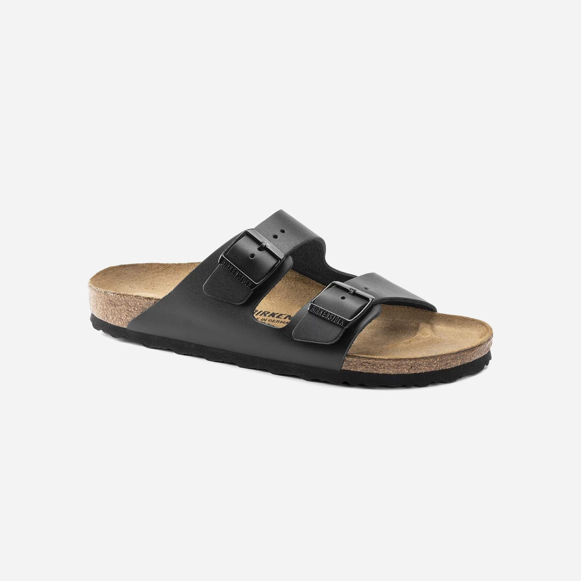 Birkenstock Arizona in black natural leather combines timeless design with exceptional comfort. Featuring the iconic contoured footbed and adjustable straps, these sandals offer superior arch support and durability. Perfect for everyday wear or casual outings, they deliver premium quality and effortless style.