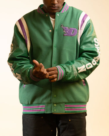 Boohoo Man x Da Baby Letterman Varsity Jacket in Green Purple (XL)