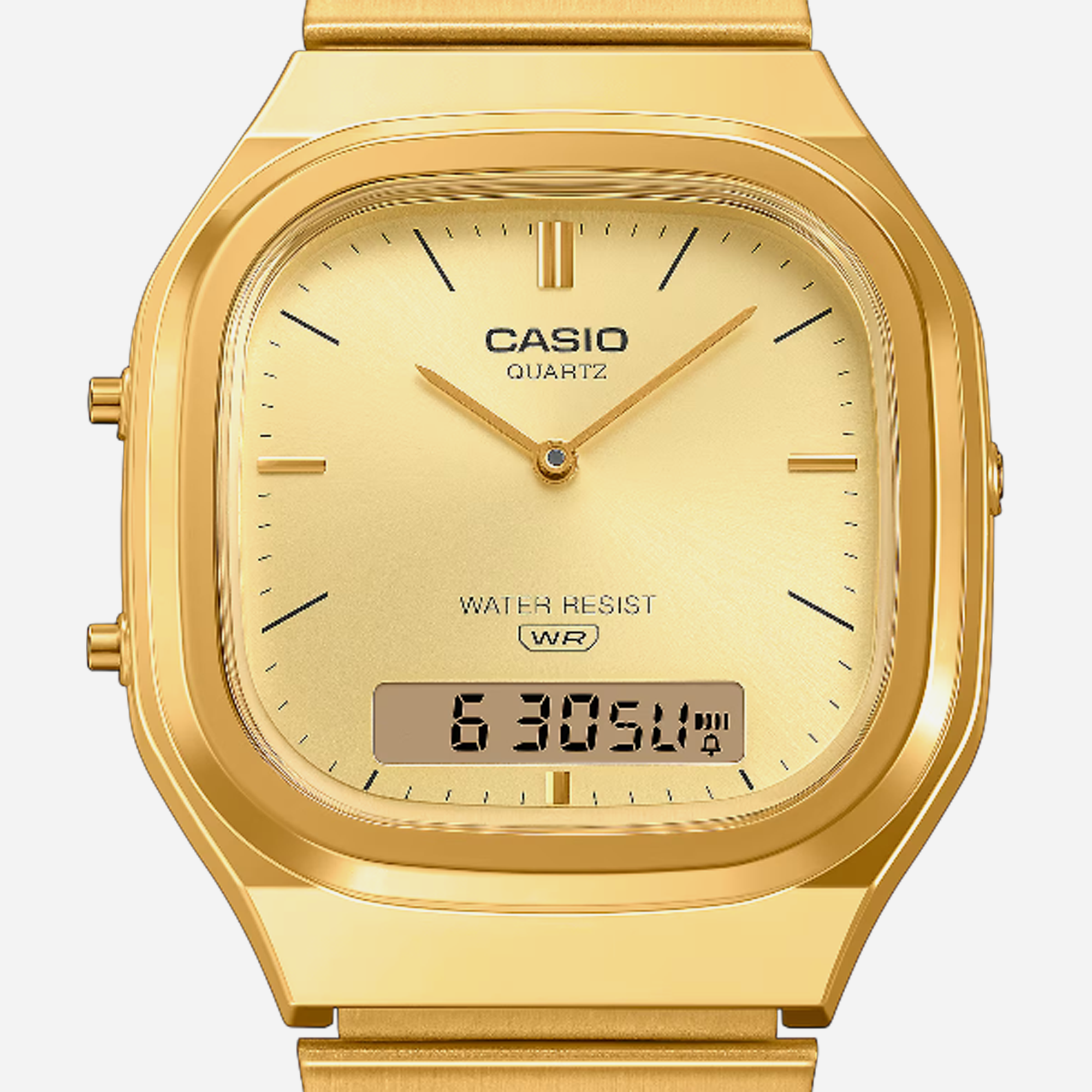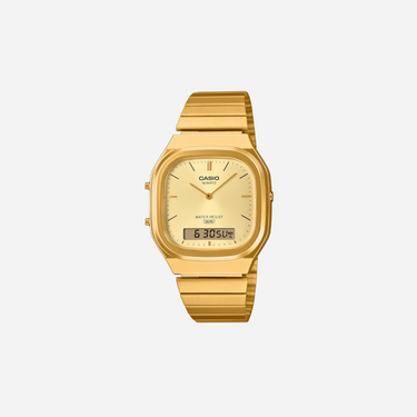 Casio Vintage AQ-240EG-9A combines classic analog digital design with gold-tone stainless steel construction. This retro watch features dual time functionality, perfect for travelers and vintage enthusiasts seeking reliable timekeeping with iconic 1980s style appeal.