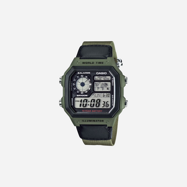 Casio Youth AE-1200WHB-3BV Digital Grey Dial Green Cloth Band Strap Watch