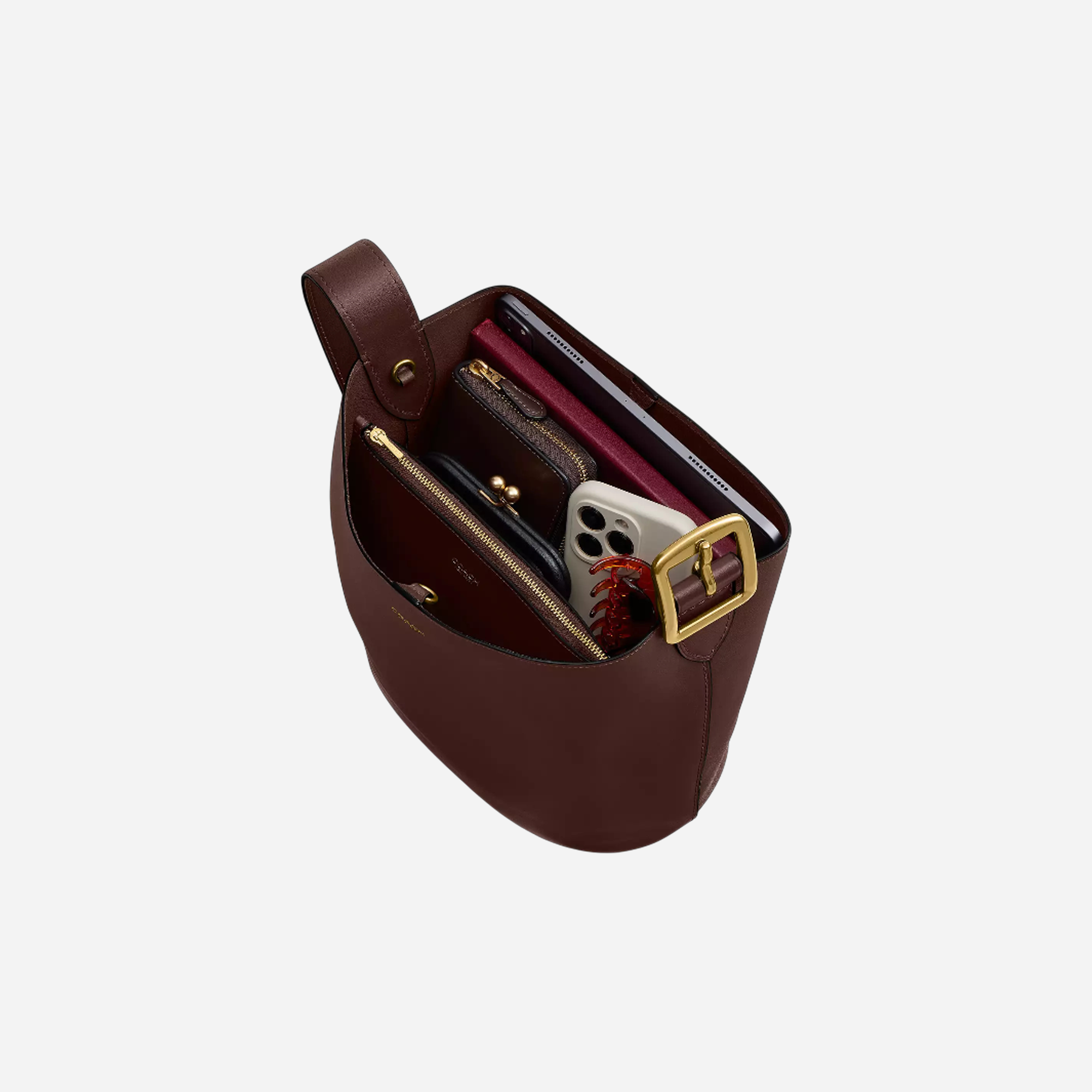 The Coach Bleecker Bucket Bag in Maple combines elegant design with practical functionality. Crafted for durability, it offers ample space and a comfortable carry, making it an ideal accessory for everyday use and stylish outings.