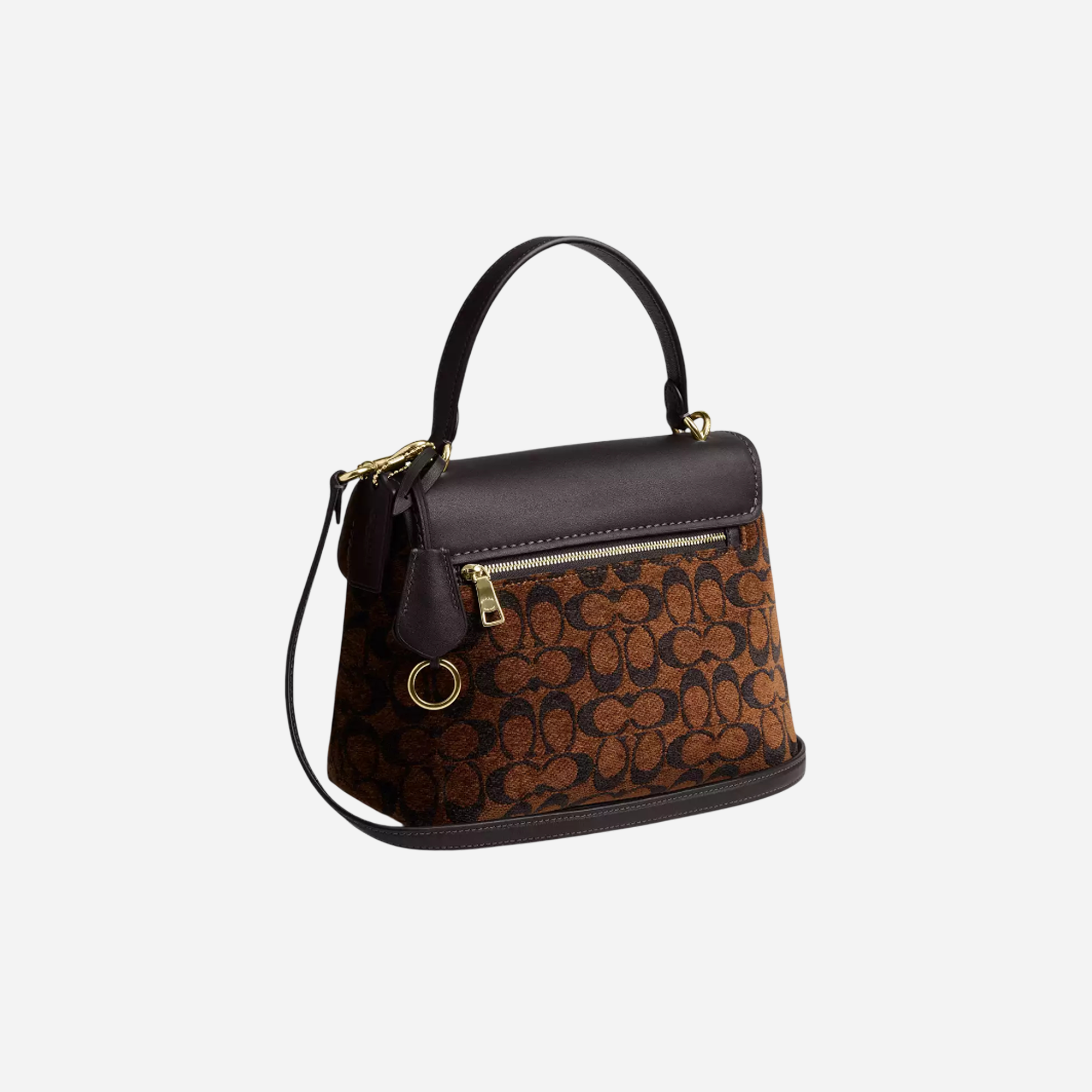 Elevate your everyday style with the COACH Emory Top Handle Bag, crafted in luxurious signature chenille. This sophisticated accessory features a timeless gold, Truffle colorway, perfect for the discerning fashion enthusiast seeking premium quality and enduring elegance.