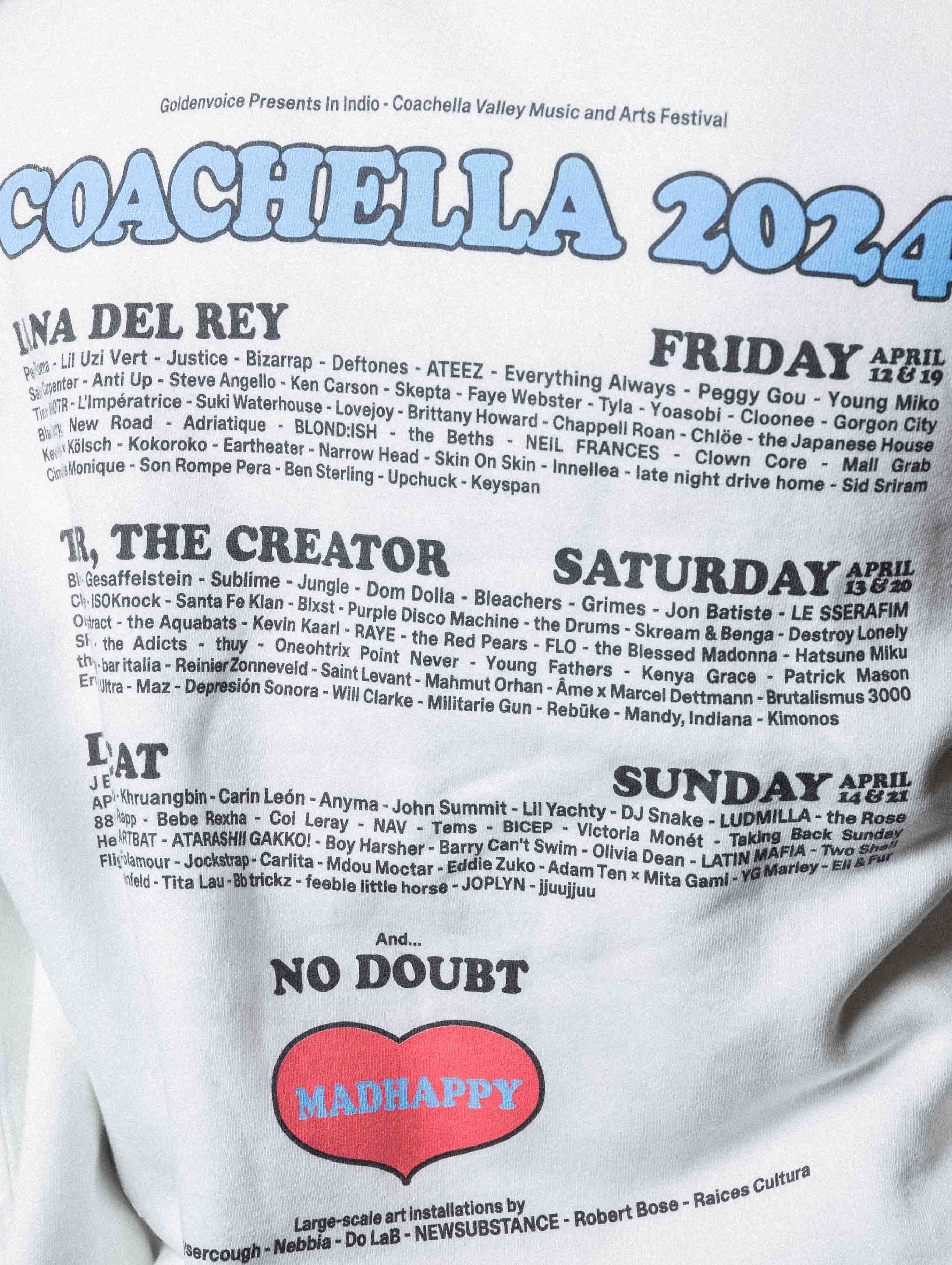 Coachella Mad Happy Sweatshirt in white delivers comfortable everyday wear with iconic festival-inspired design perfect for casual styling and layering. Relaxed fit