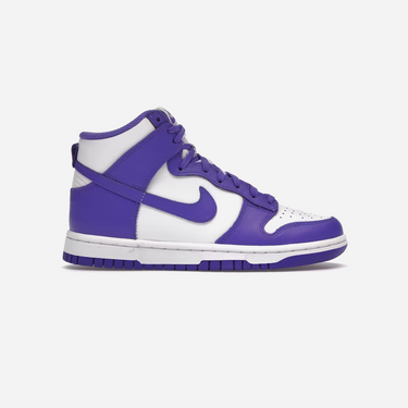 The Nike Dunk High Court Purple WMNS showcases a bold purple and white design with classic high top silhouette. This sneaker provides excellent ankle support and stylish comfort making it ideal for women seeking iconic basketball inspired footwear.