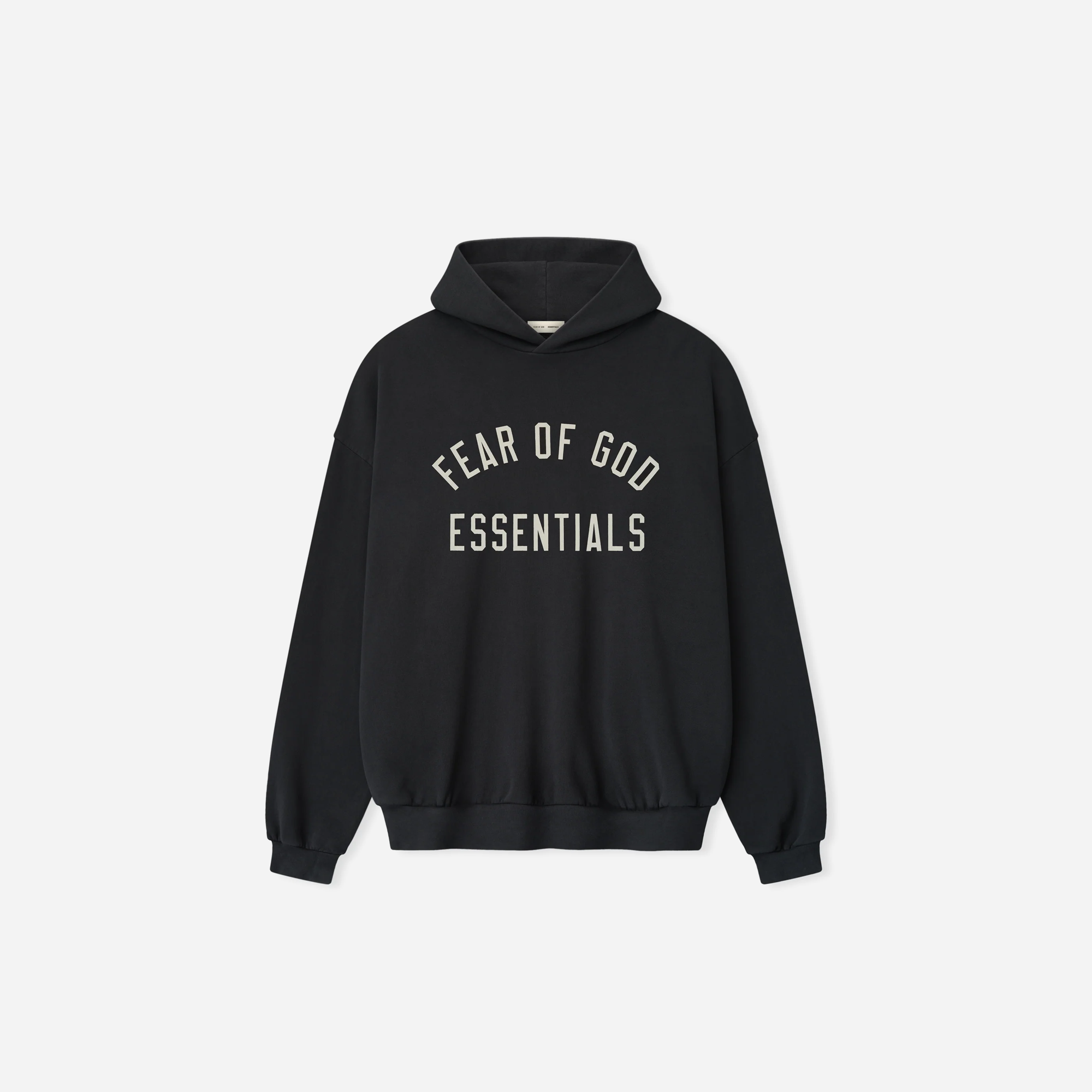 Fear of God Essentials 90s fit hoodie in vintage black merges nostalgic design with contemporary comfort. Constructed from premium heavyweight fabric, this oversized hoodie delivers warmth and durability for layering or standalone wear. An iconic piece that elevates casual streetwear aesthetics effortlessly.