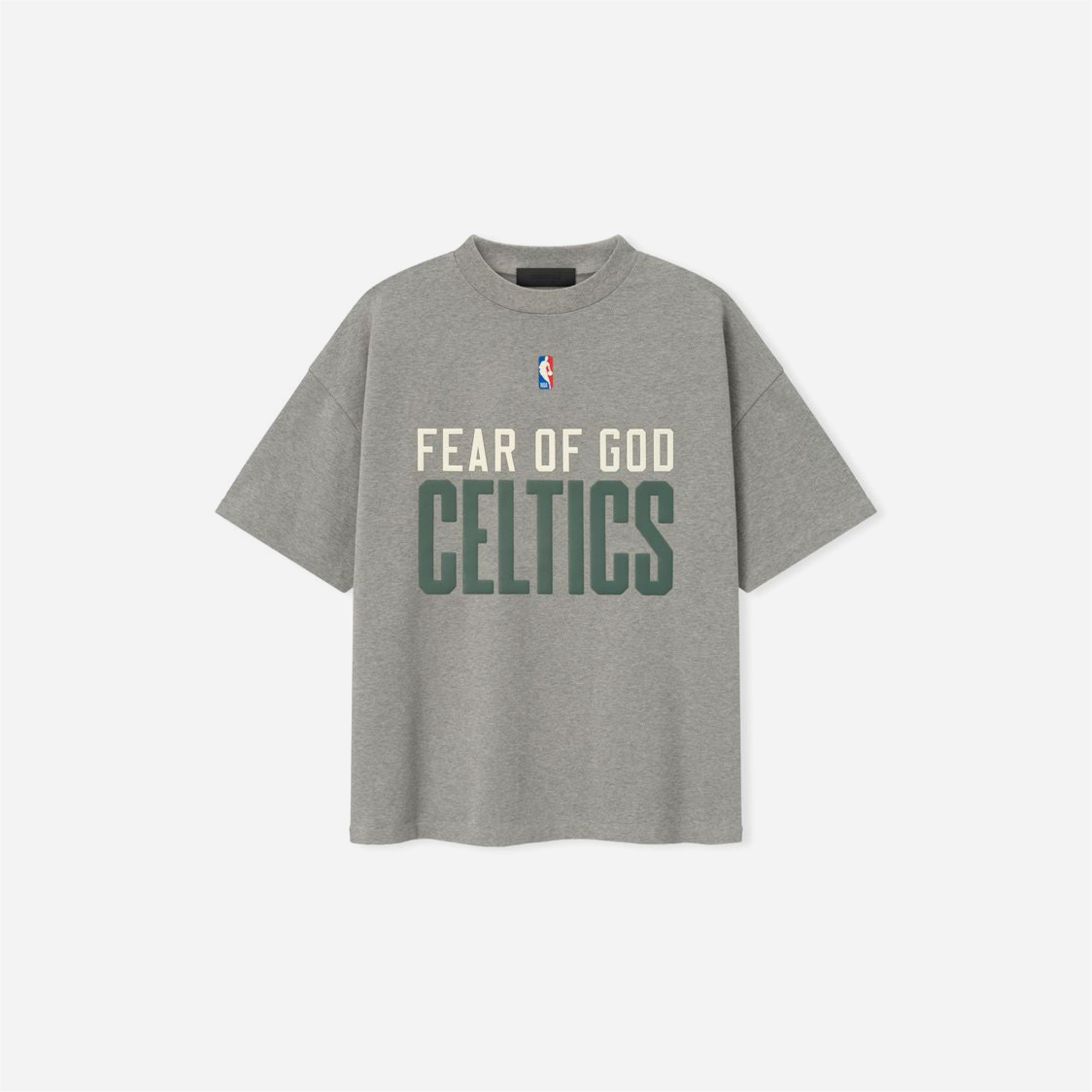 The Fear Of God Essentials Celtics 90s Tee in Concrete Heather delivers vintage style and comfort. This premium t-shirt boasts a classic 90s fit perfect for Celtics fans and streetwear enthusiasts. Experience high quality fabric designed for everyday wear. Elevate your wardrobe with this highly sought after collectible apparel.