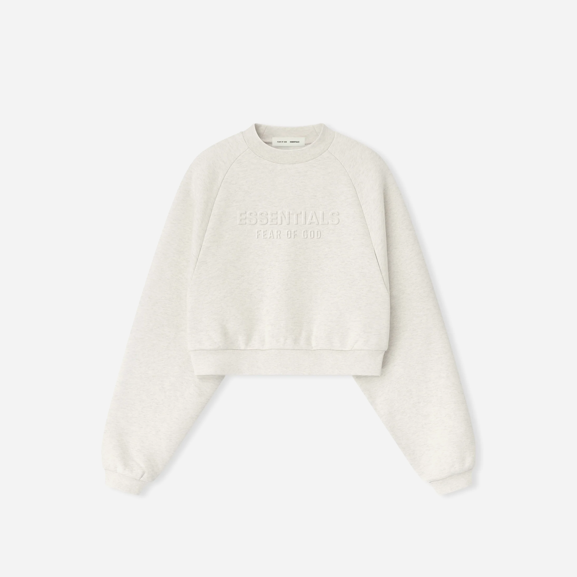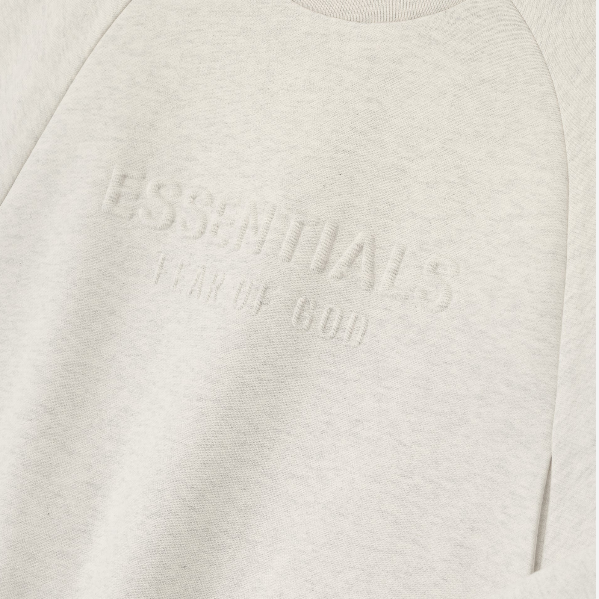 Fear Of God Essentials Embossed 90s Raglan Crewneck Sweatshirt Oatmeal Heather WMNS