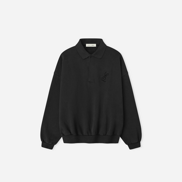 Fear Of God Essentials Embroidered Classic Polo Sweatshirt Vintage Black
