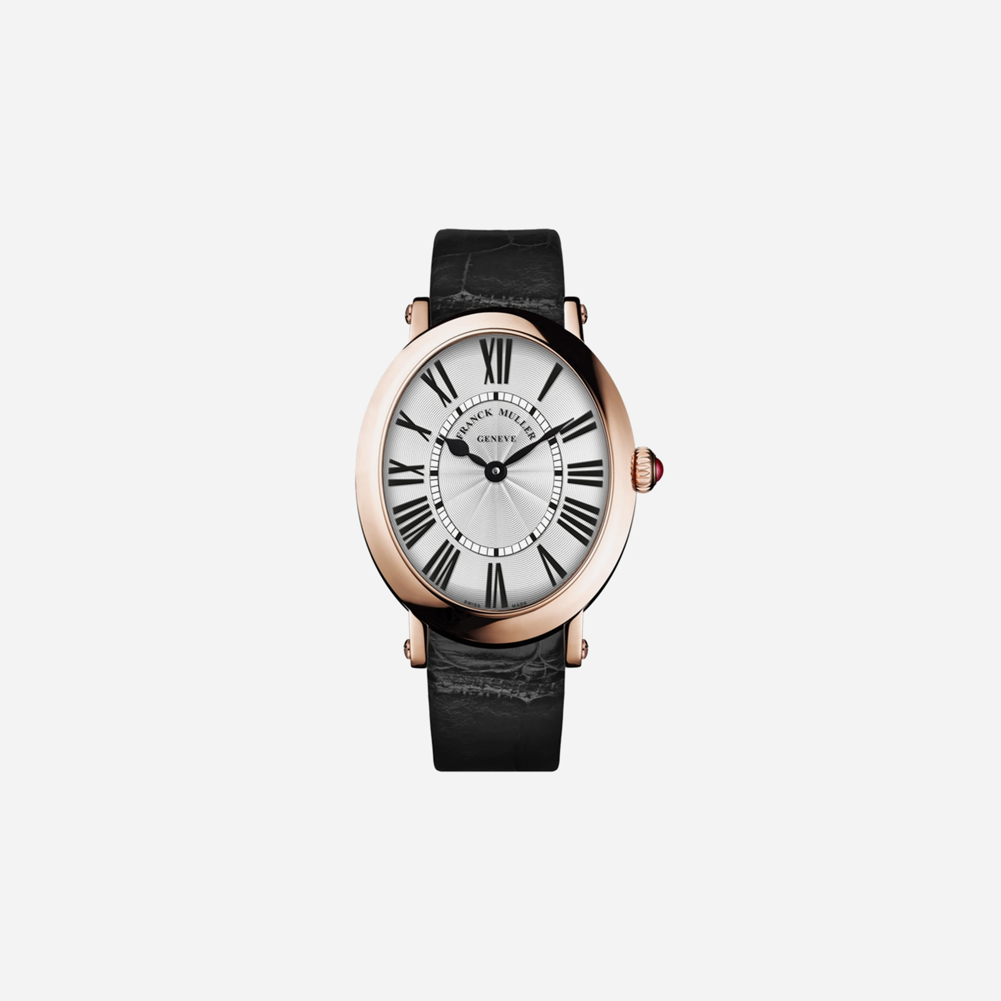 The Franck Muller Oval Silver Dial Watch is an exquisite timepiece for women, featuring a luxurious silver dial and a comfortable leather strap. This sophisticated 33mm watch offers elegance and style. It is a stunning accessory from FRANCK MULLER, perfect for those seeking a timeless luxury watch.