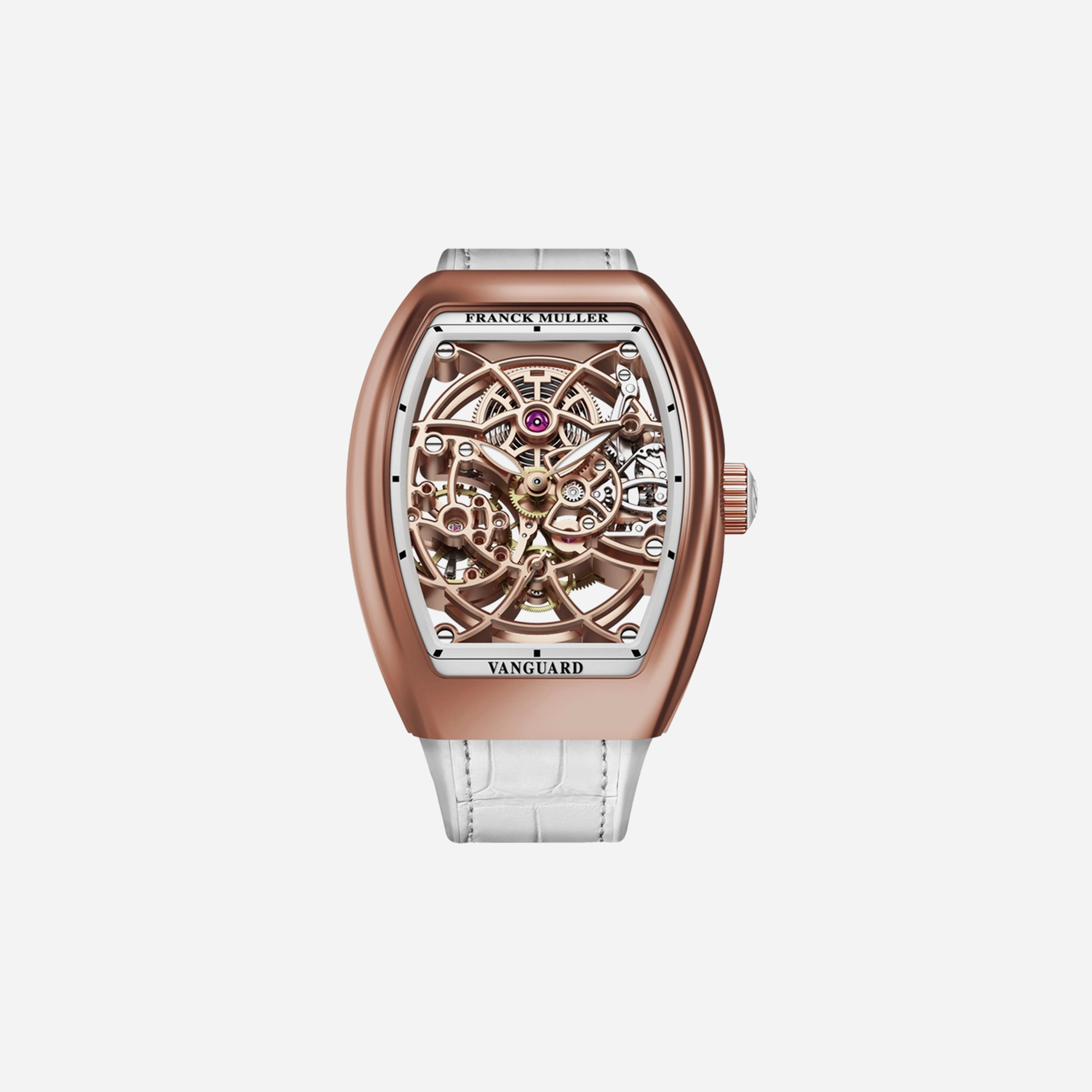 Franck Muller Vanguard Lady Skeleton Dial Leather Strap Watch WMNS - V 32 S6 SQT (BC)5N