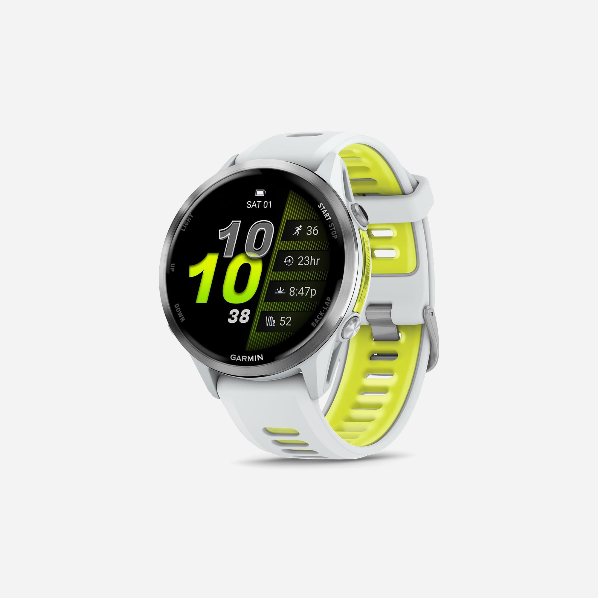 The Garmin Forerunner 970 Titanium with Whitestone is a premium GPS running and triathlon smartwatch featuring a bright Amoled display and sapphire lens This durable wearable provides advanced training metrics recovery insights and mapping to help athletes optimize their fitness performance