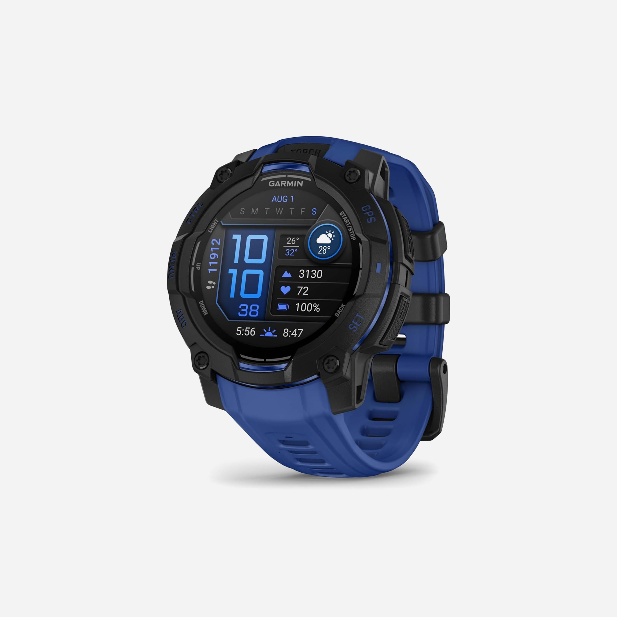 The Garmin Instinct 3 Supernova Edition is a rugged 45mm outdoor GPS smartwatch featuring a bright Amoled display and built in flashlight This limited edition black and bolt blue wearable offers advanced health tracking and long battery life for adventurers