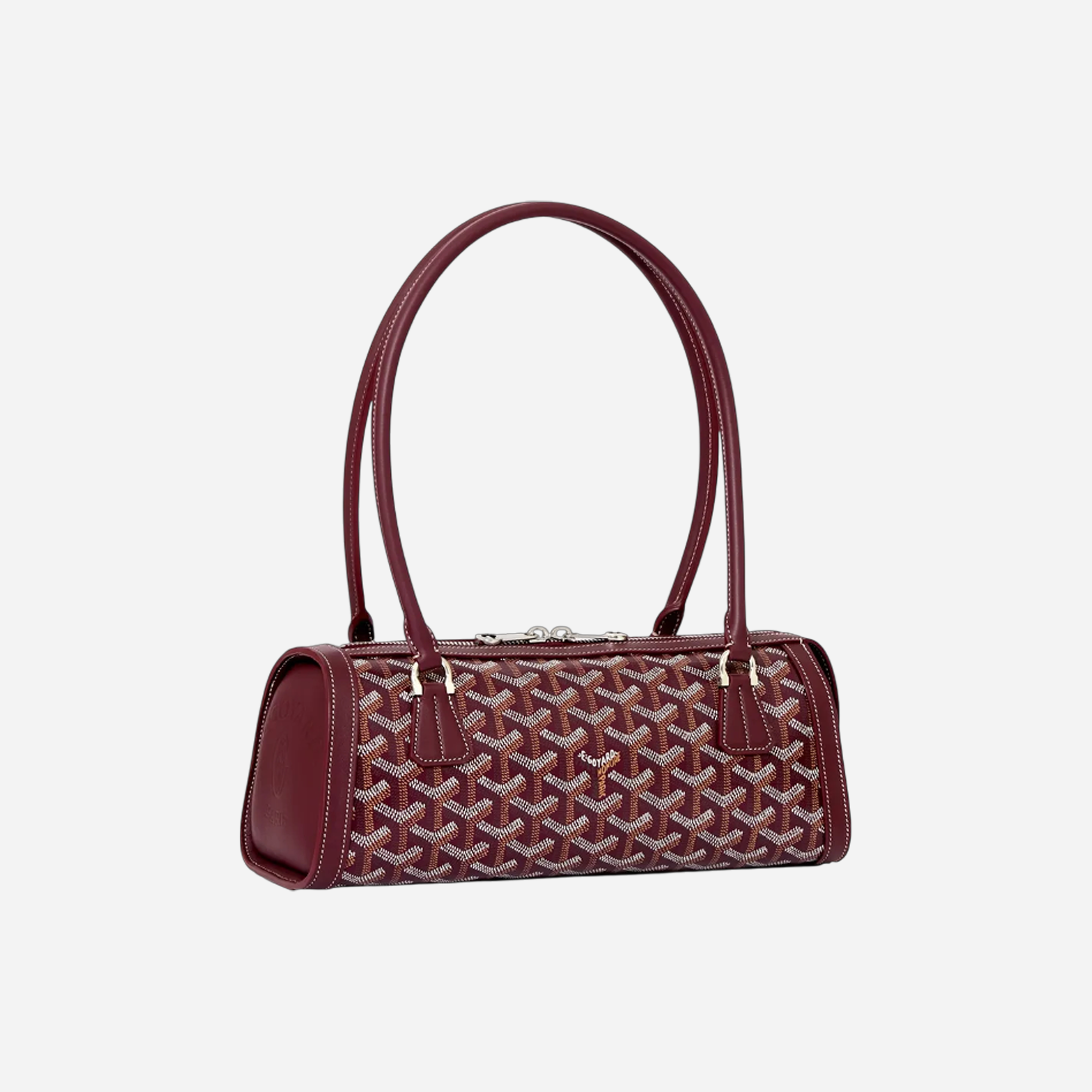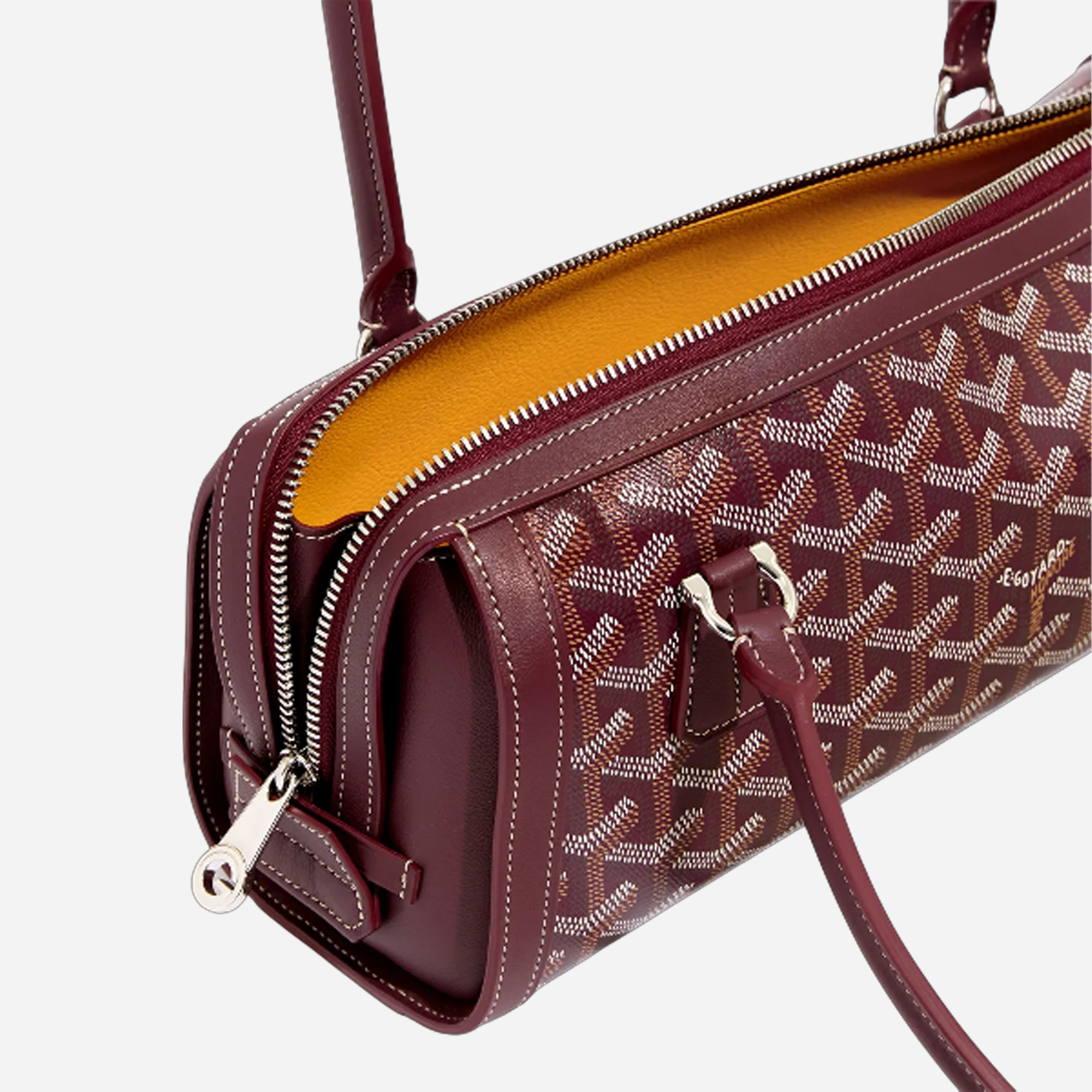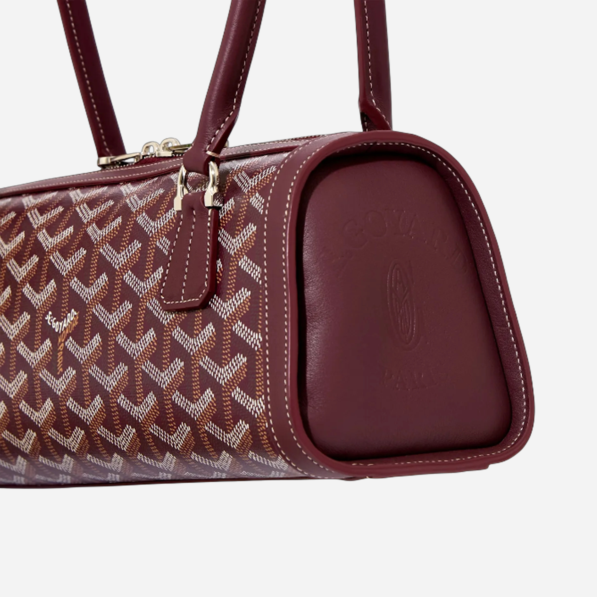 Goyard Bonbonniere Bag in rich burgundy combines timeless French craftsmanship with iconic canvas construction. Perfect for luxury enthusiasts seeking a versatile, durable handbag that elevates any wardrobe with understated elegance and heritage appeal.