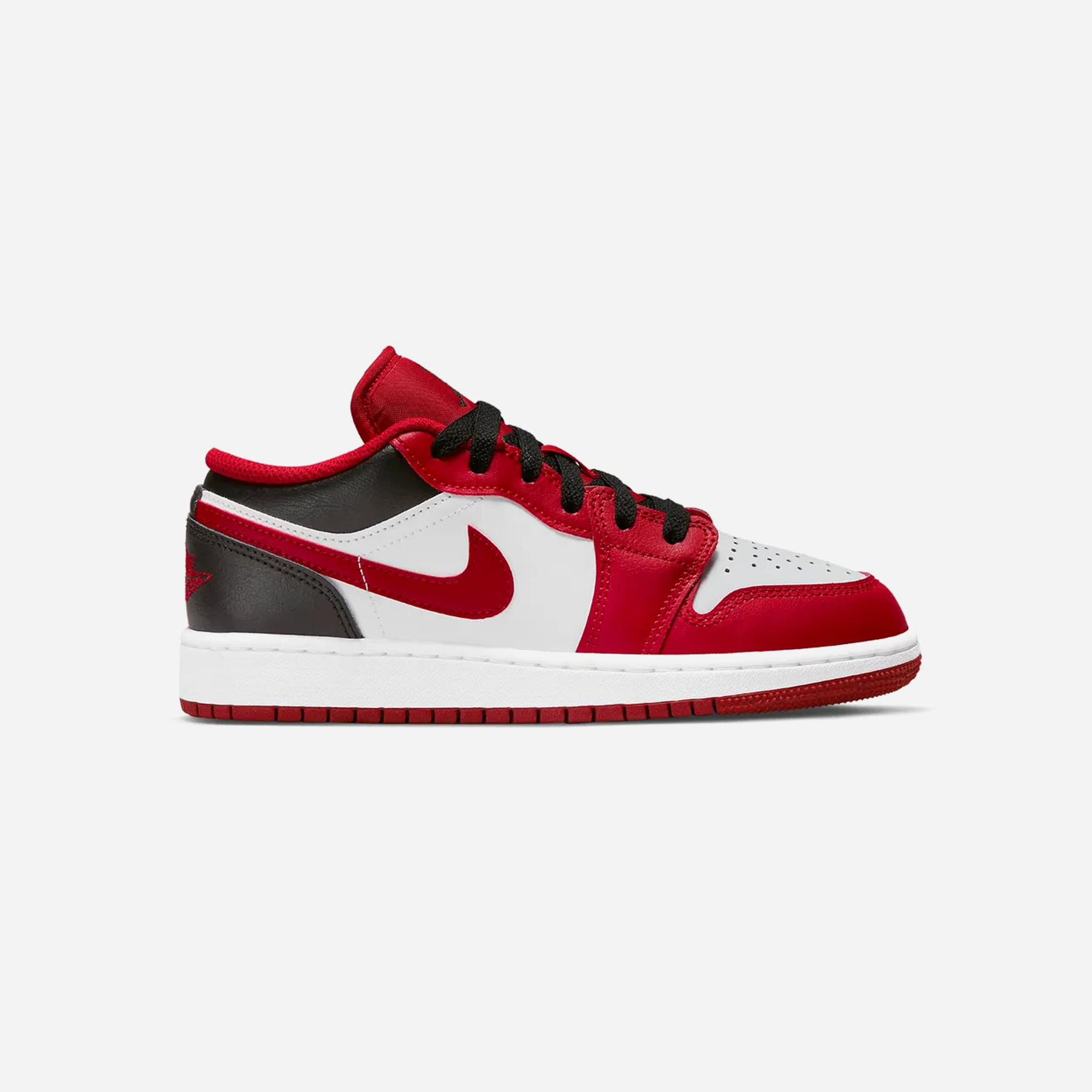 Nike Air Jordan 1 Low Bulls GS delivers iconic style for young athletes. Featuring the classic red and black colorway, these sneakers combine heritage basketball design with modern comfort. Perfect for casual wear or court performance, they offer durability and timeless appeal that resonates with sneaker enthusiasts worldwide.