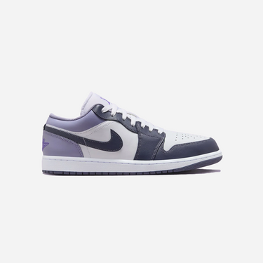The Air Jordan 1 Low 'Purple Comet' features a smooth white leather upper with bold purple accents on the Swoosh, heel tab, and outsole, creating a striking contrast. A mix of lilac and deep royal purple overlays add depth to the design, while subtle neon branding details enhance its modern appeal. The classic low-top silhouette, cushioned midsole, and durable rubber outsole ensure all-day comfort and timeless style.