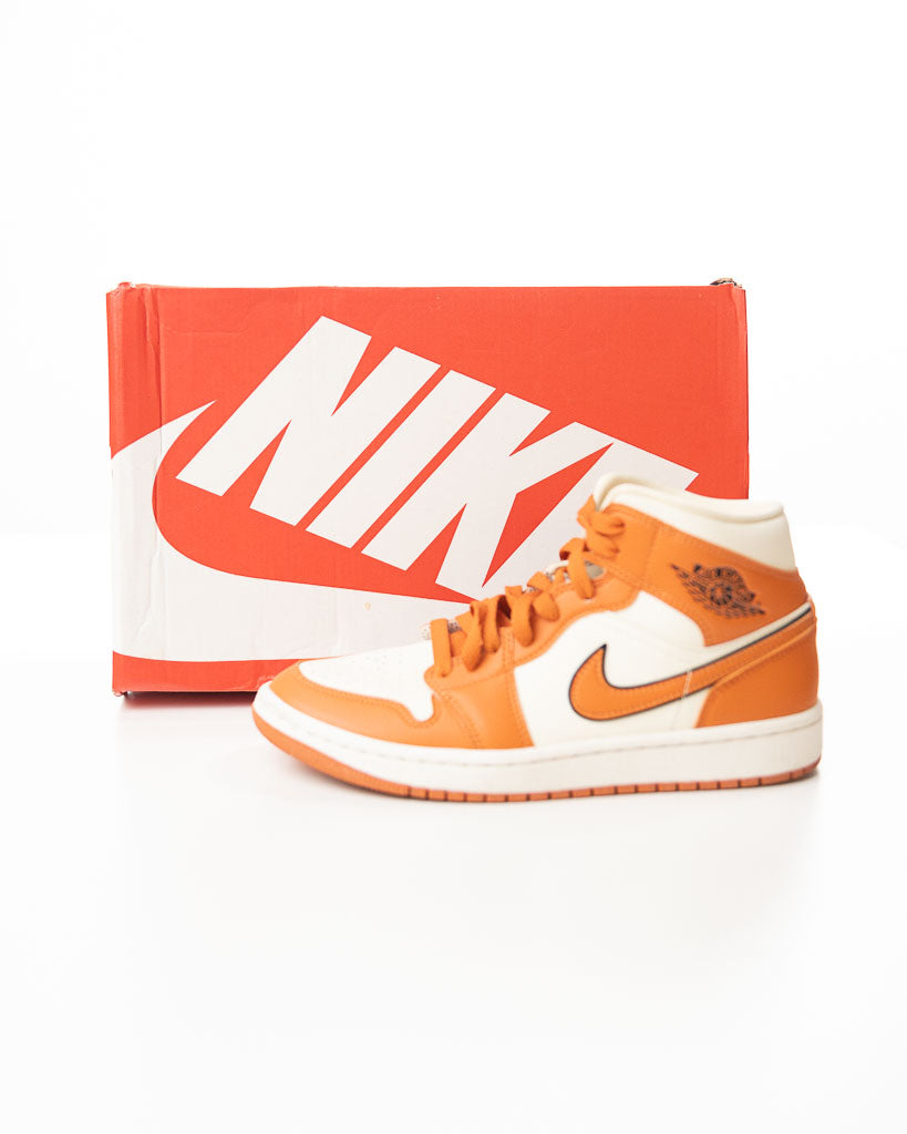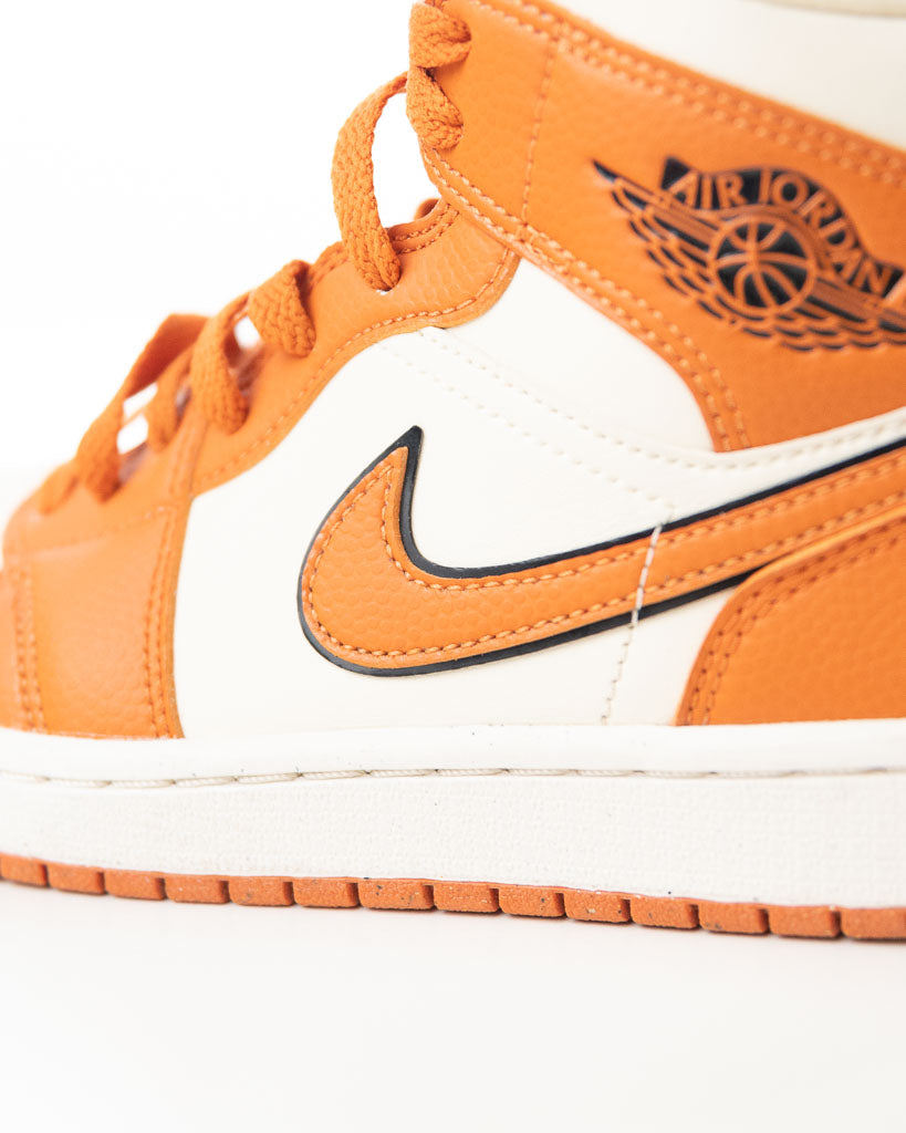 Step up your style with the Nike Women's Air Jordan 1 Mid SE in a vibrant Sport Spice colorway crafted from premium materials for a bold twist on a classic design. Step up