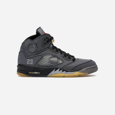 The Nike Air Jordan 5 Retro Off-White Muslin sneaker is a highly coveted collaboration piece offering a vintage aesthetic with Virgil Ablohs signature deconstructed style. This edition features a sleek black textile upper with translucent features and a unique Muslin color palette. A must-have collectors item blending street fashion and basketball heritage.
