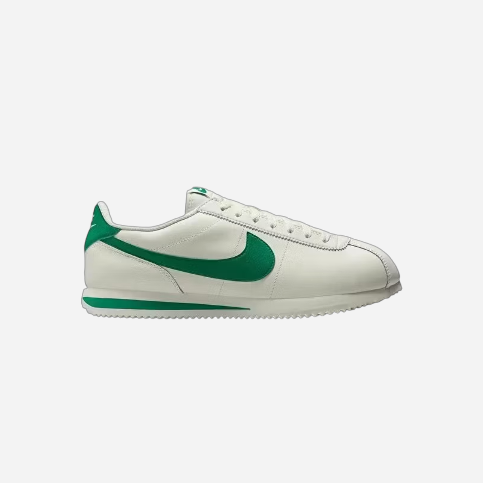 Nike Cortez Sail Stadium Green combines classic silhouette with modern colorway. Premium leather construction ensures durability and comfort. Iconic design perfect for casual wear and sneaker collections. Versatile neutral tones pair effortlessly with any outfit. Timeless style meets contemporary appeal.