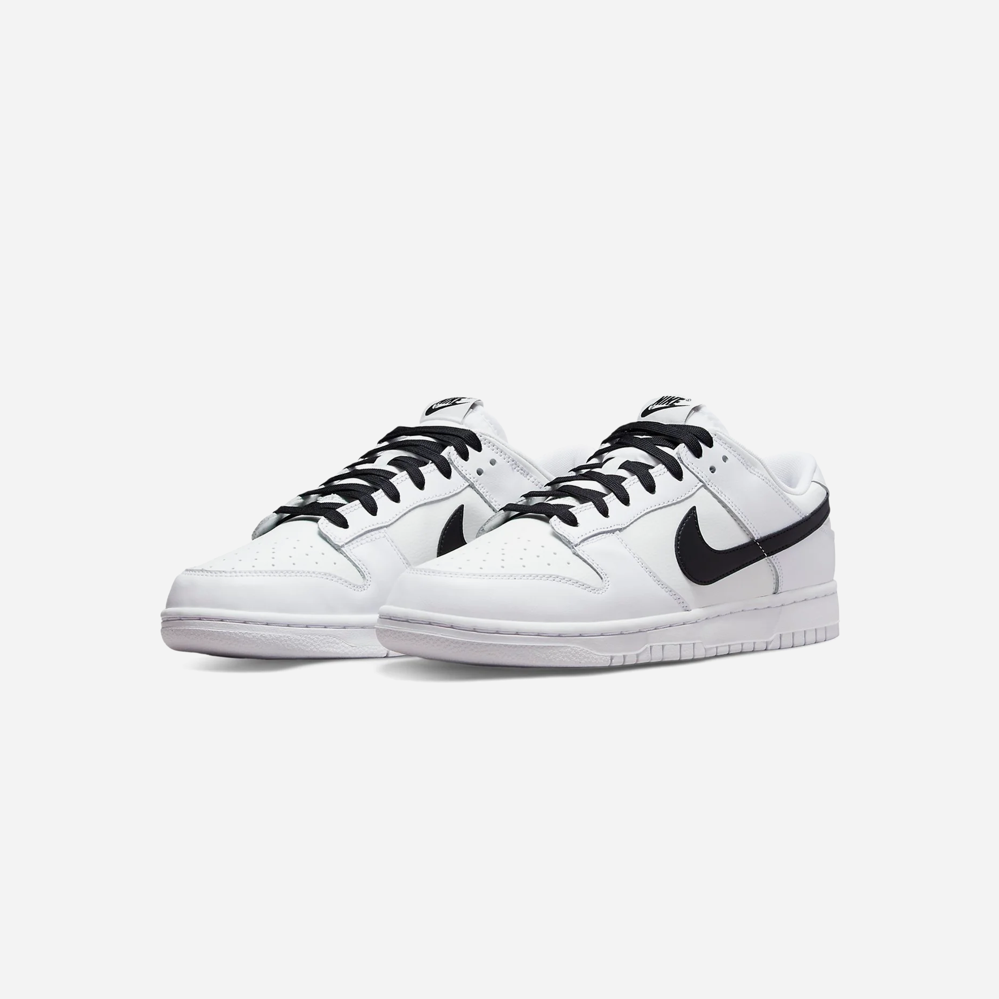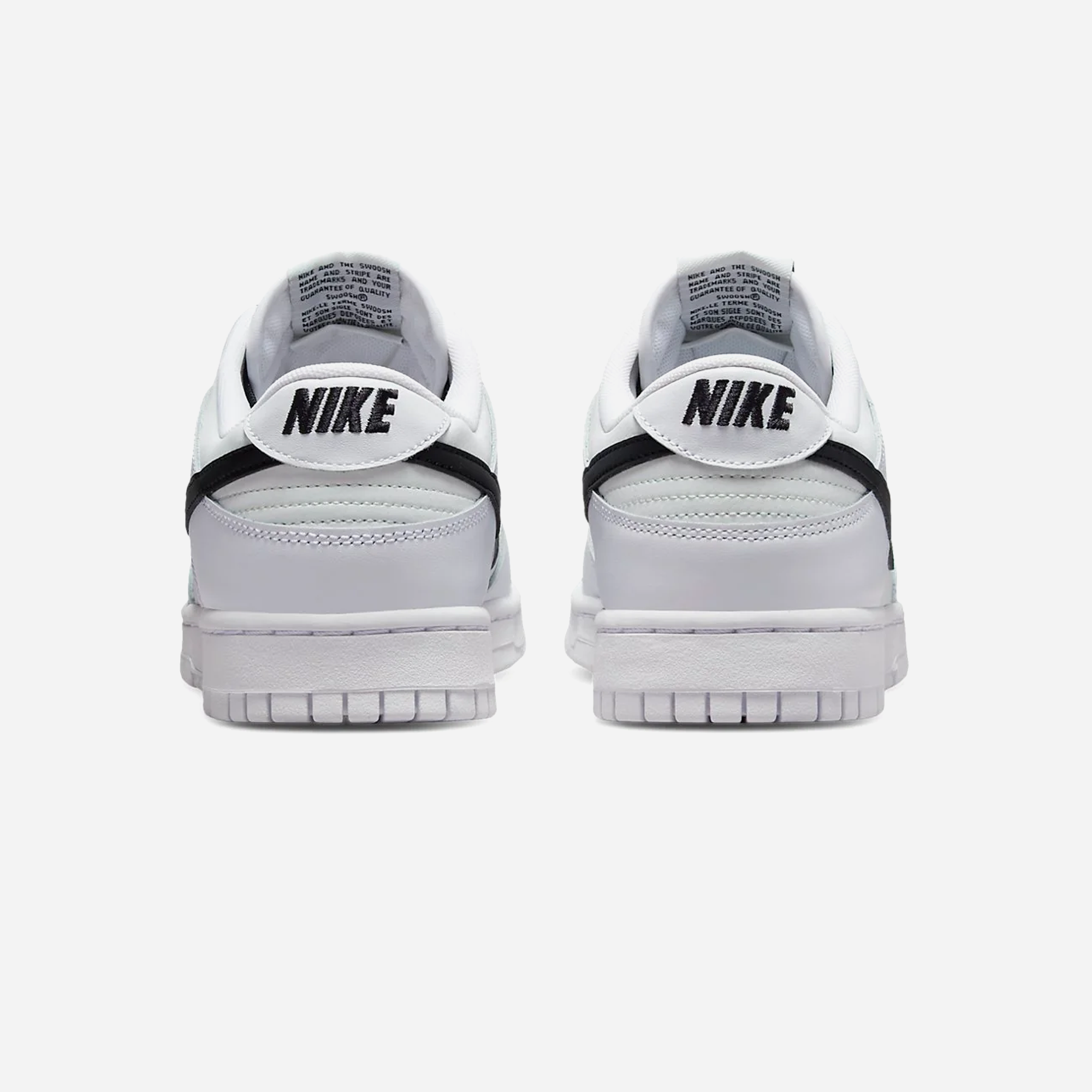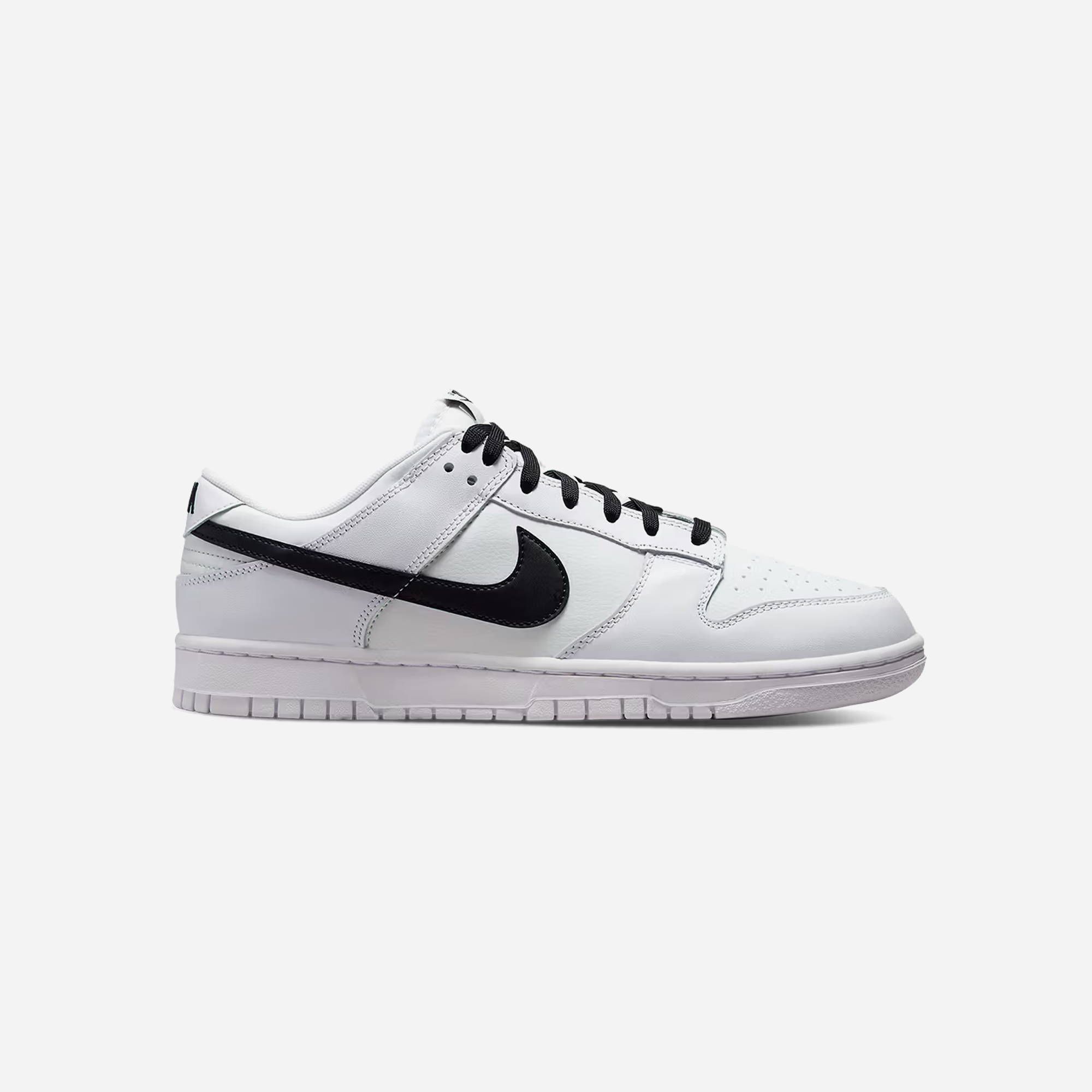 The Nike Dunk Low Reverse Panda reimagines the iconic Panda colorway with a fresh twist. Featuring a white leather upper with bold black accents, this sneaker flips the traditional color scheme to offer a striking new look. The classic Dunk silhouette is complemented by a cushioned midsole for comfort and a rubber outsole for reliable traction. Ideal for everyday wear, this model combines modern style with the timeless appeal of the Dunk series, making it a versatile addition to any collection.