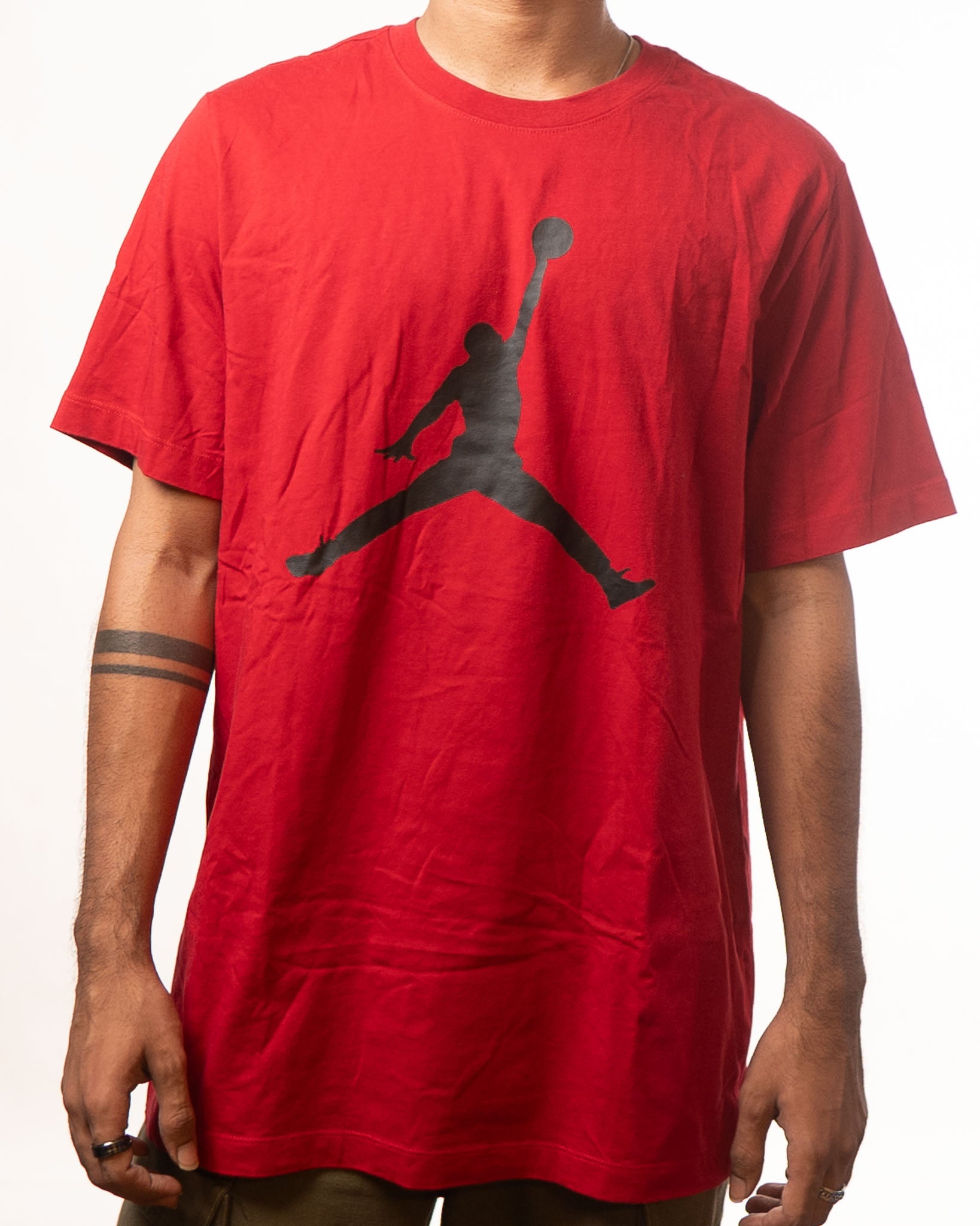 Bold Jordan Red Jumpman T-shirt features iconic branding, soft cotton comfort, and everyday street style.