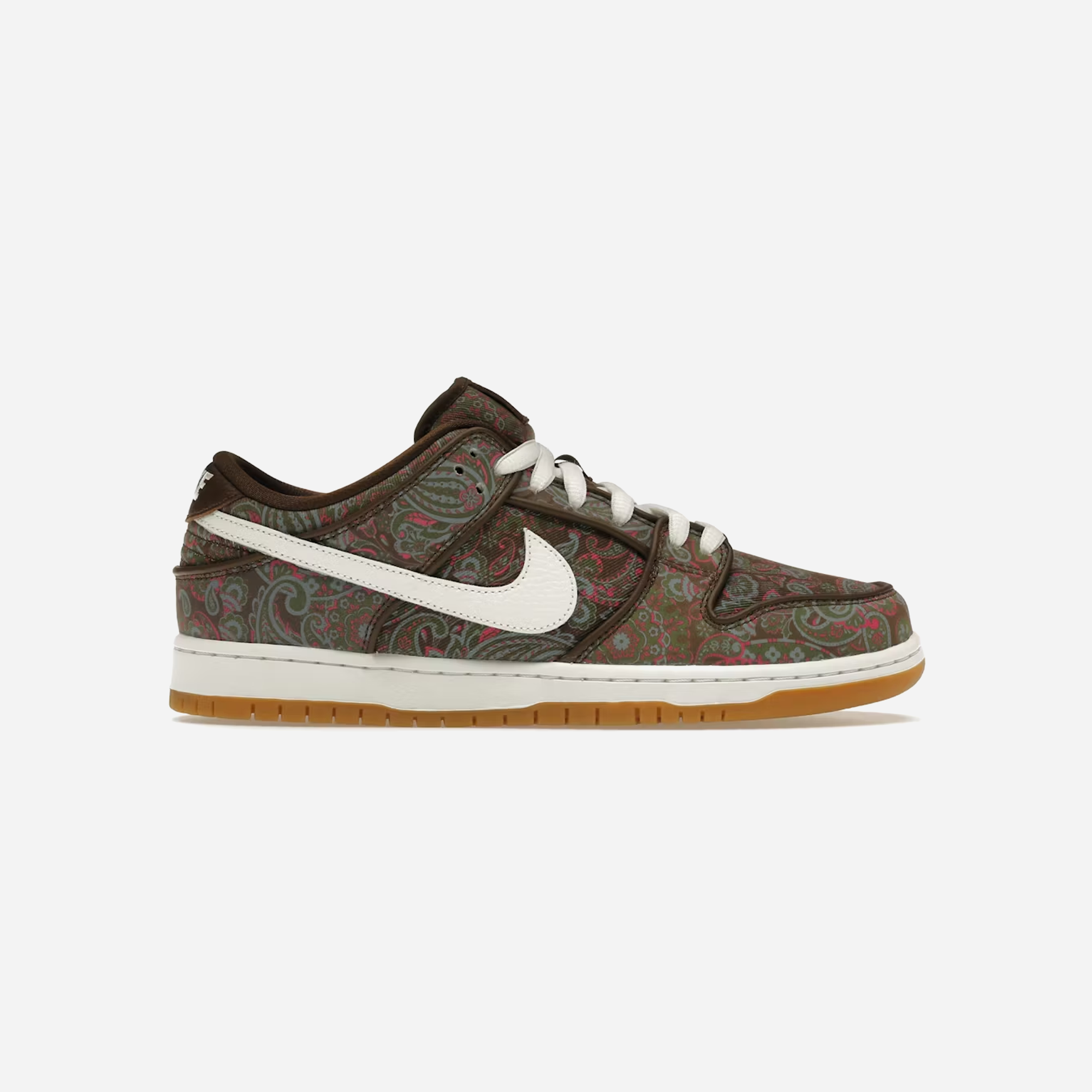SB Dunk Low Pro Paisley Brown: Embrace a unique style with the SB Dunk Low Pro Paisley Brown. This sneaker features a brown paisley patterned upper with premium materials and a comfortable fit. The distinctive design and durable construction make it perfect for those who appreciate individuality and style in their footwear.