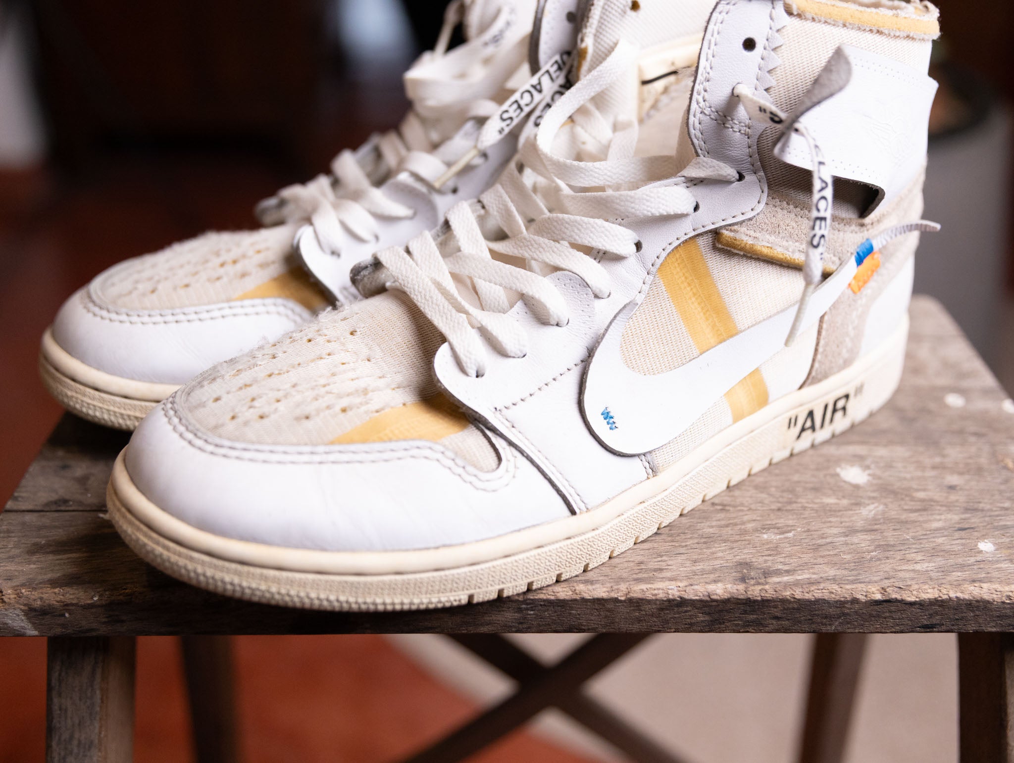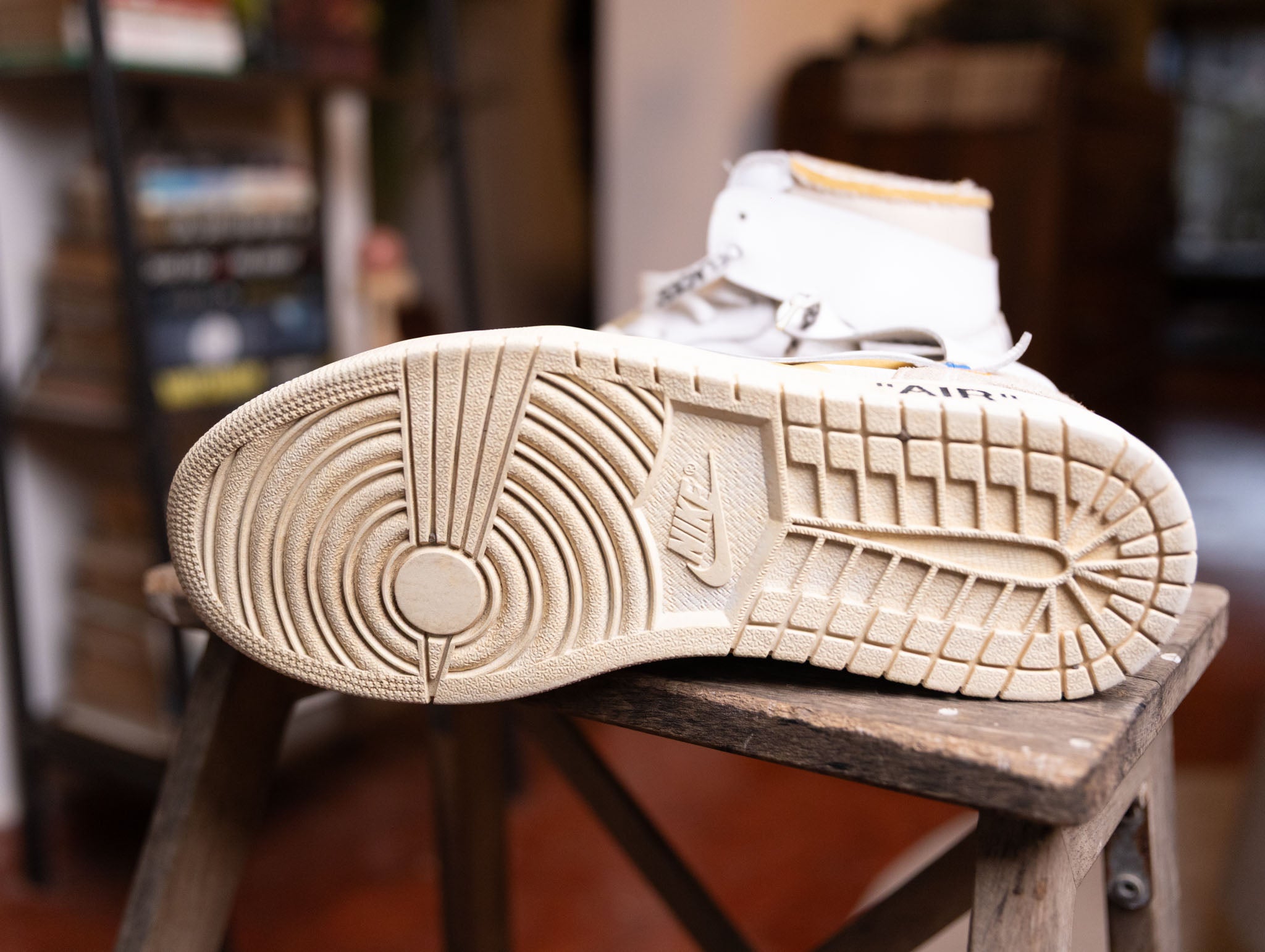 Off-White EU AJ1 Retro High features deconstructed design, neutral tones, and premium leather, creating a highly collectible, limited edition silhouette.