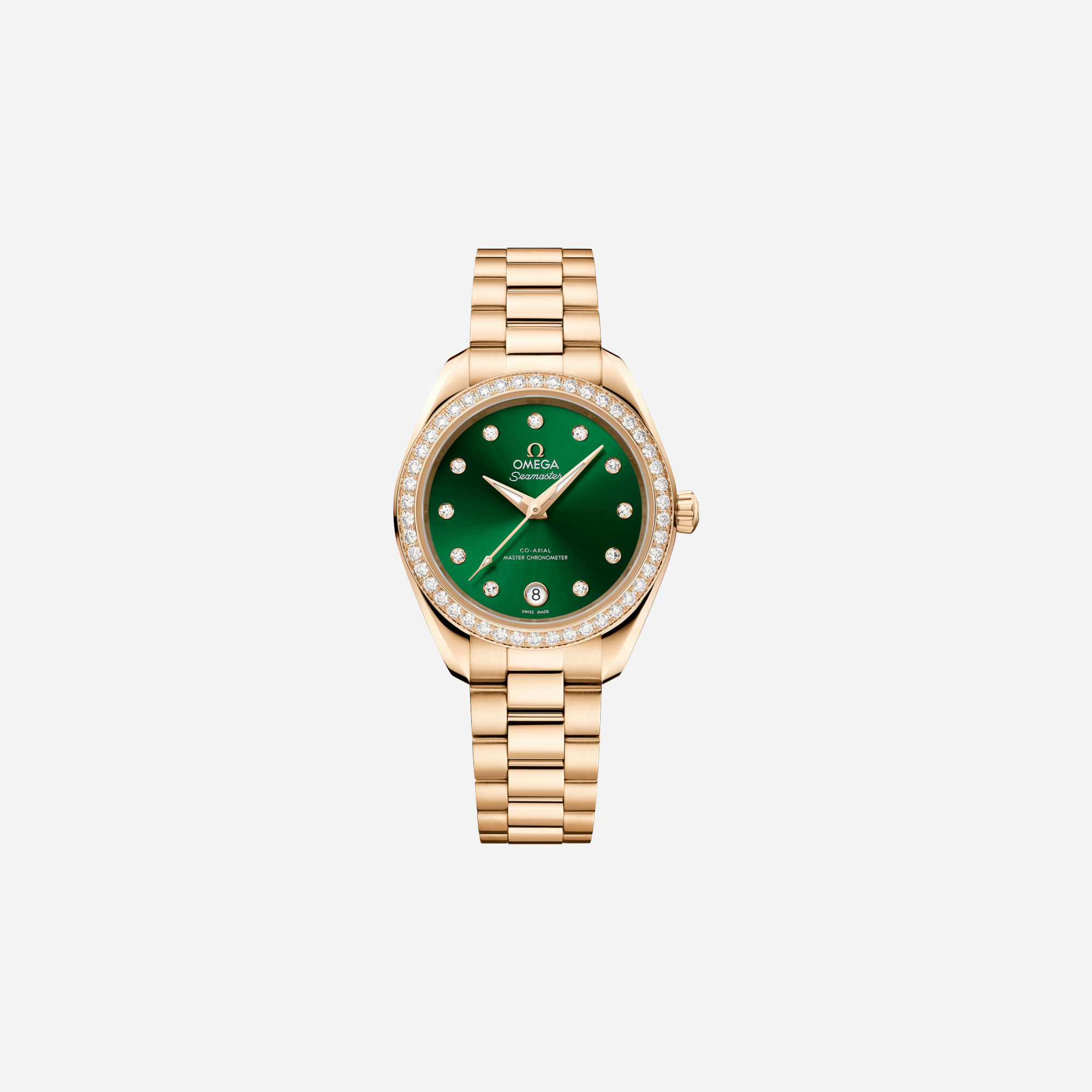 The Omega Seamaster Aqua Terra 150M Green Dial Moonshine Gold Strap Watch offers luxury and precision. This stunning timepiece features a captivating green dial and an elegant Moonshine Gold case and strap. Experience the perfect blend of sophisticated design and superior Swiss watchmaking with this exceptional Omega watch, ideal for any serious collector.