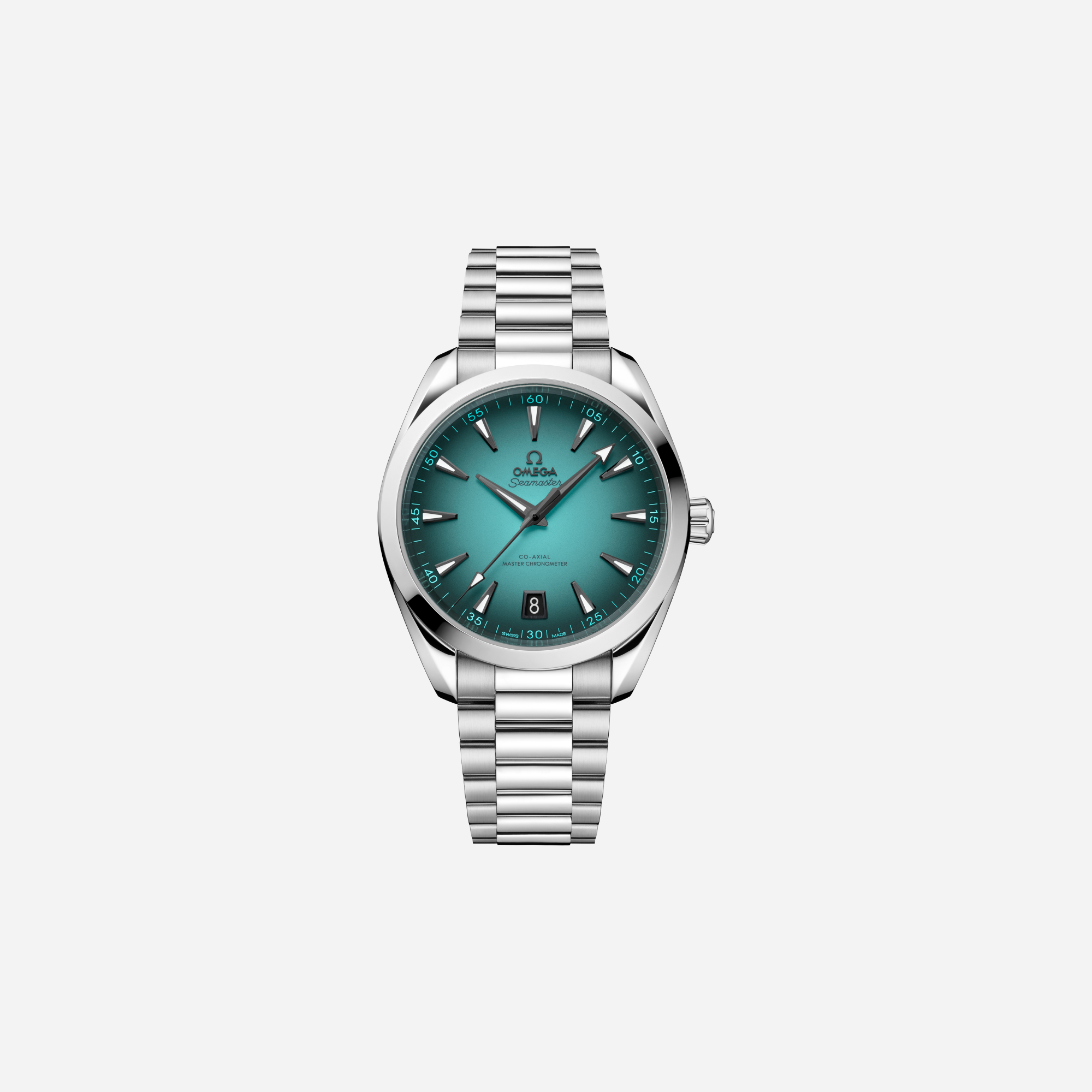 The Omega Seamaster Aqua Terra 150M watch features a striking turquoise black gradient dial and a durable stainless steel strap. This elegant 41mm timepiece is a perfect blend of style and function, ideal for any serious watch collector. Discover the precision and craftsmanship of OMEGA.