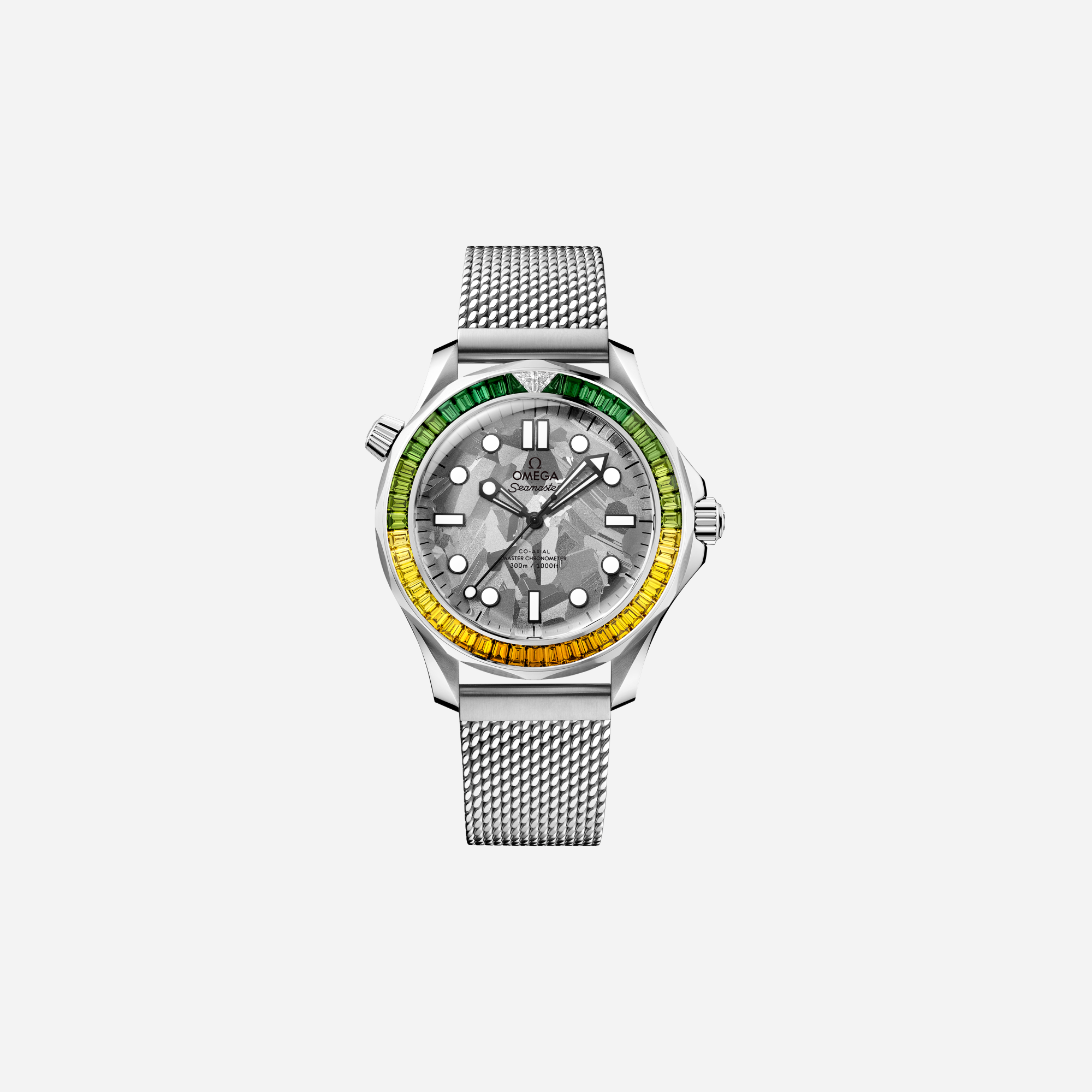 The Omega Seamaster Diver 300M James Bond 60th Anniversary watch is a luxurious timepiece crafted from Canopus Gold. This special edition features a natural grey dial and matching Canopus Gold strap making it a stunning celebration of six decades of 007. It honors the iconic secret agent in spectacular style perfect for collectors.