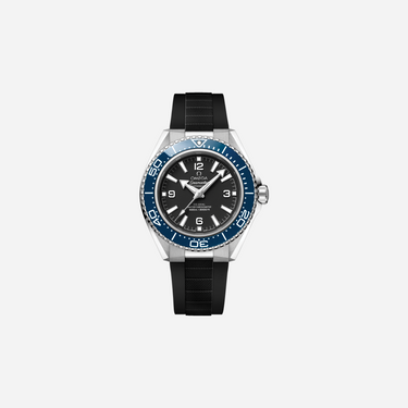 The Omega Seamaster Planet Ocean 600M features a striking black dial and a durable stainless steel case. This luxurious timepiece is paired with a comfortable rubber strap for everyday wear. It is built for diving enthusiasts, offering 600 meters of water resistance and co-axial master chronometer precision.