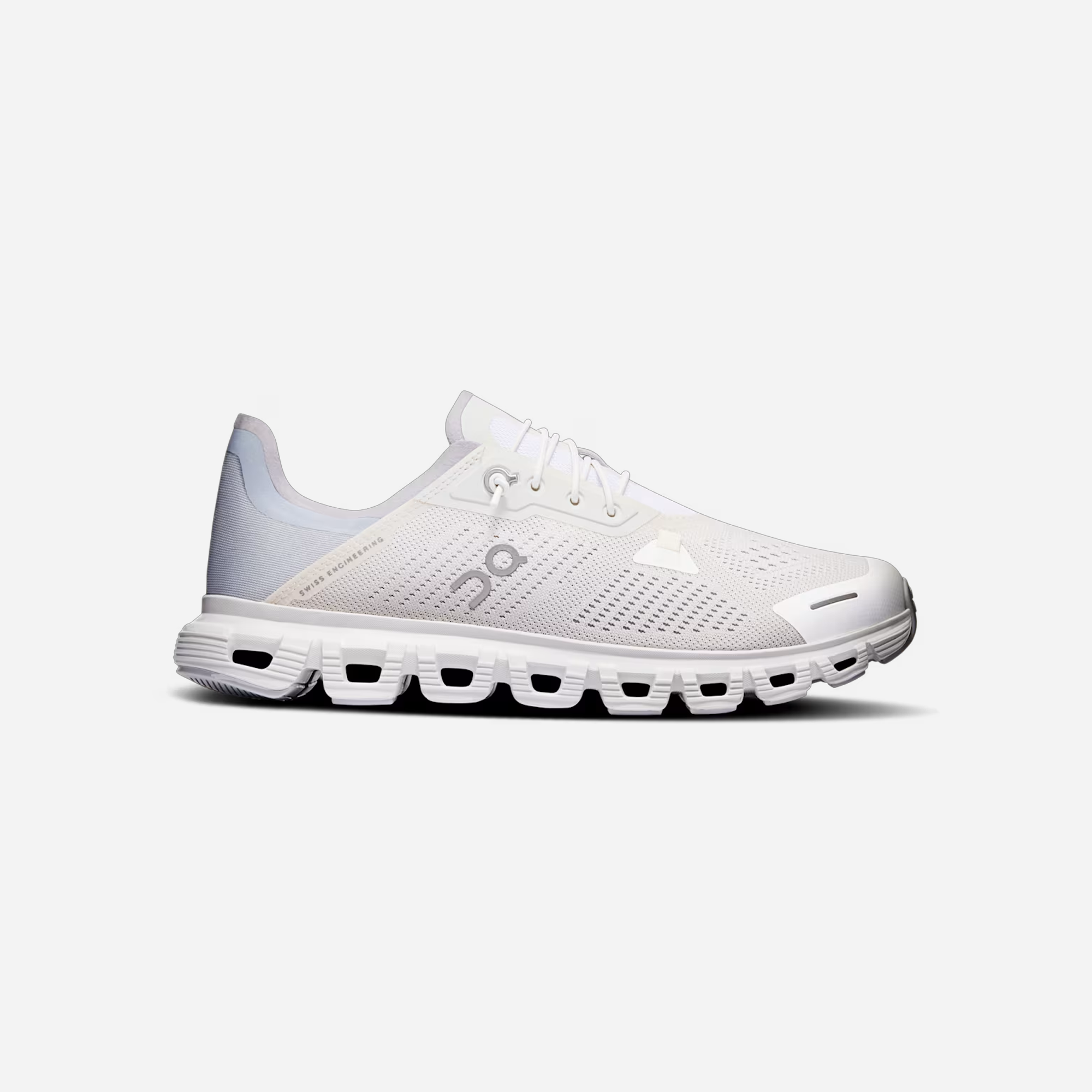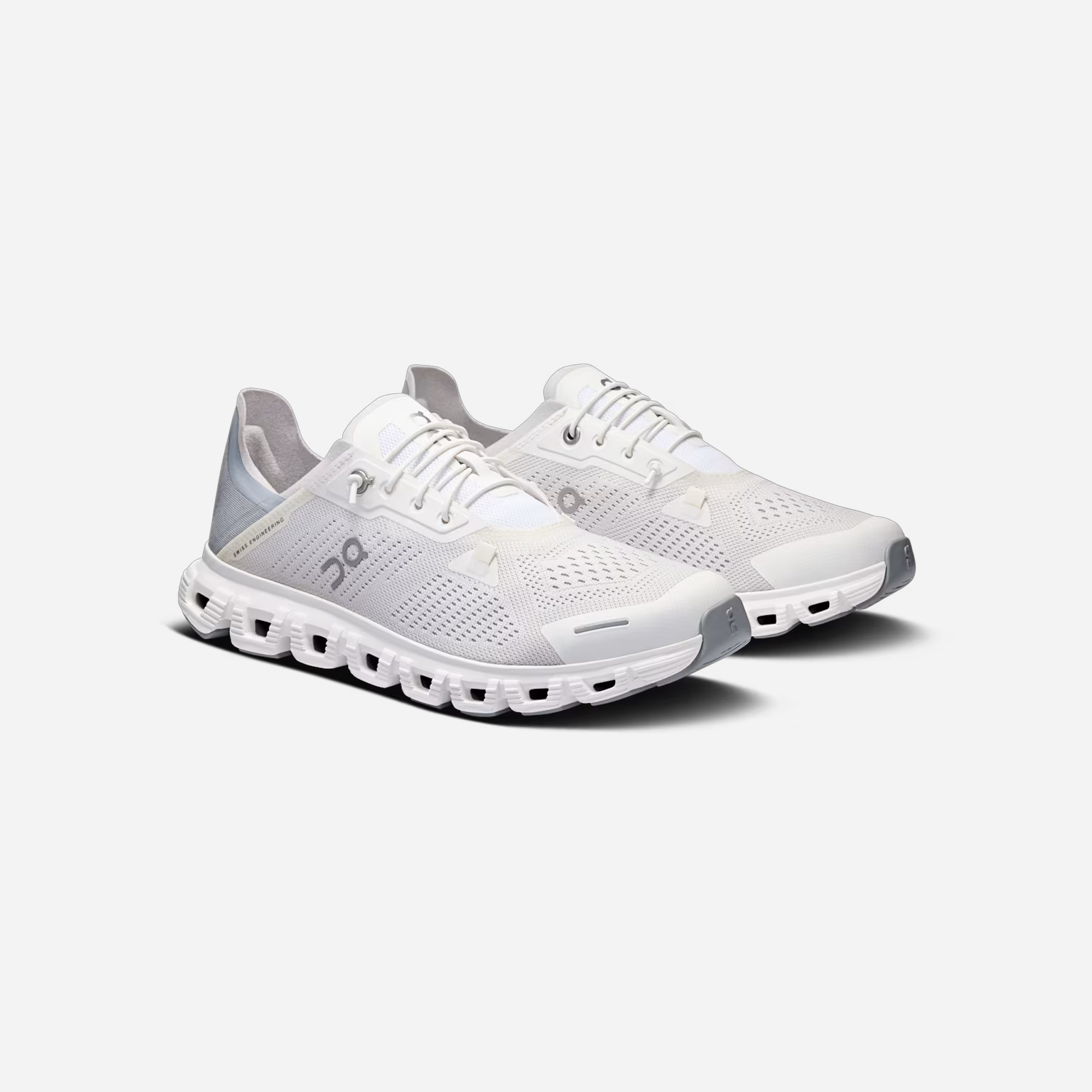 The ON Running Cloud 6 Coast White Glacier WMNS is a lightweight slip-on shoe designed for warm weather and travel. This shoe offers breathability and easy comfort making it perfect for coastal adventures or daily wear. Its clean white and glacier colorway provides a stylish look for any summer outfit.