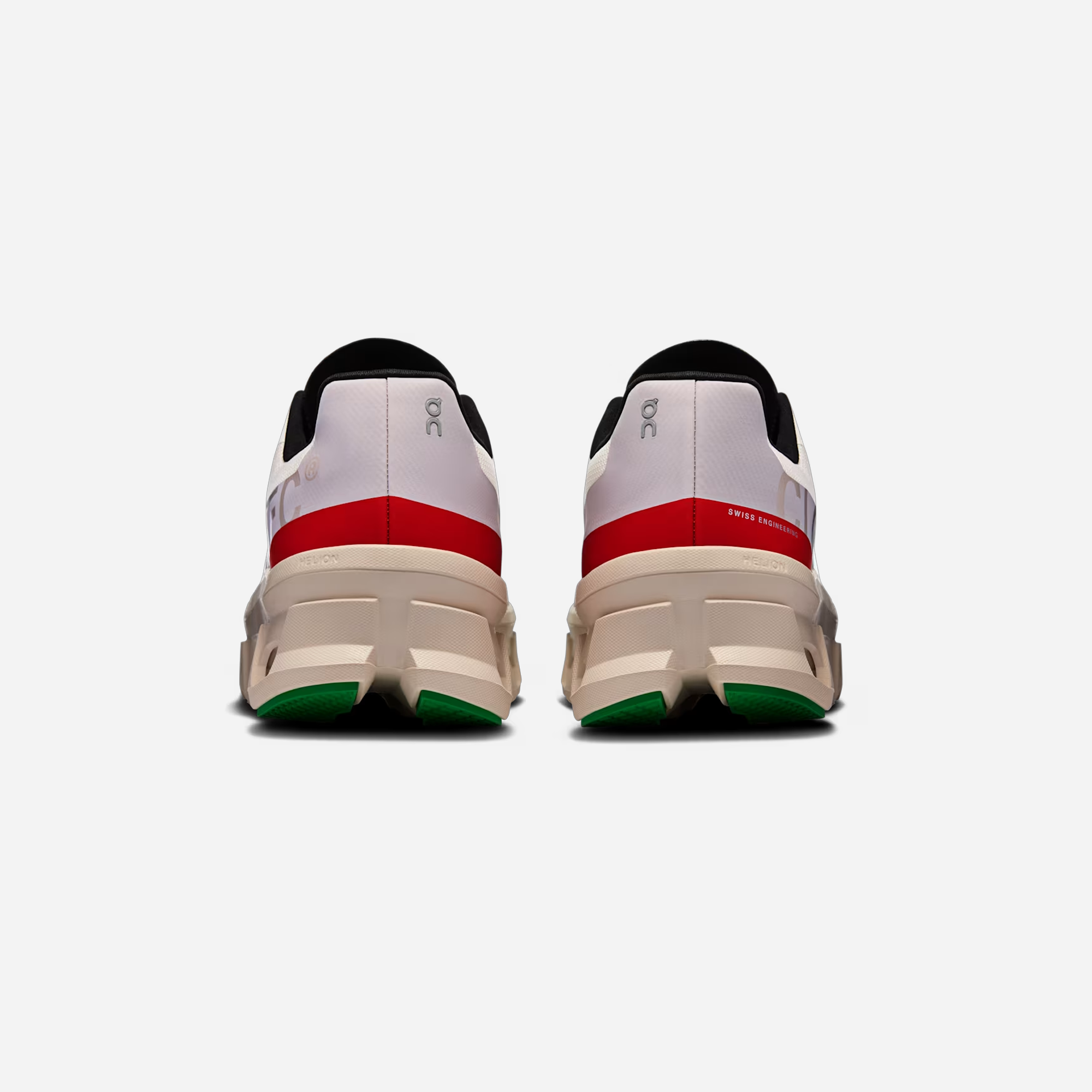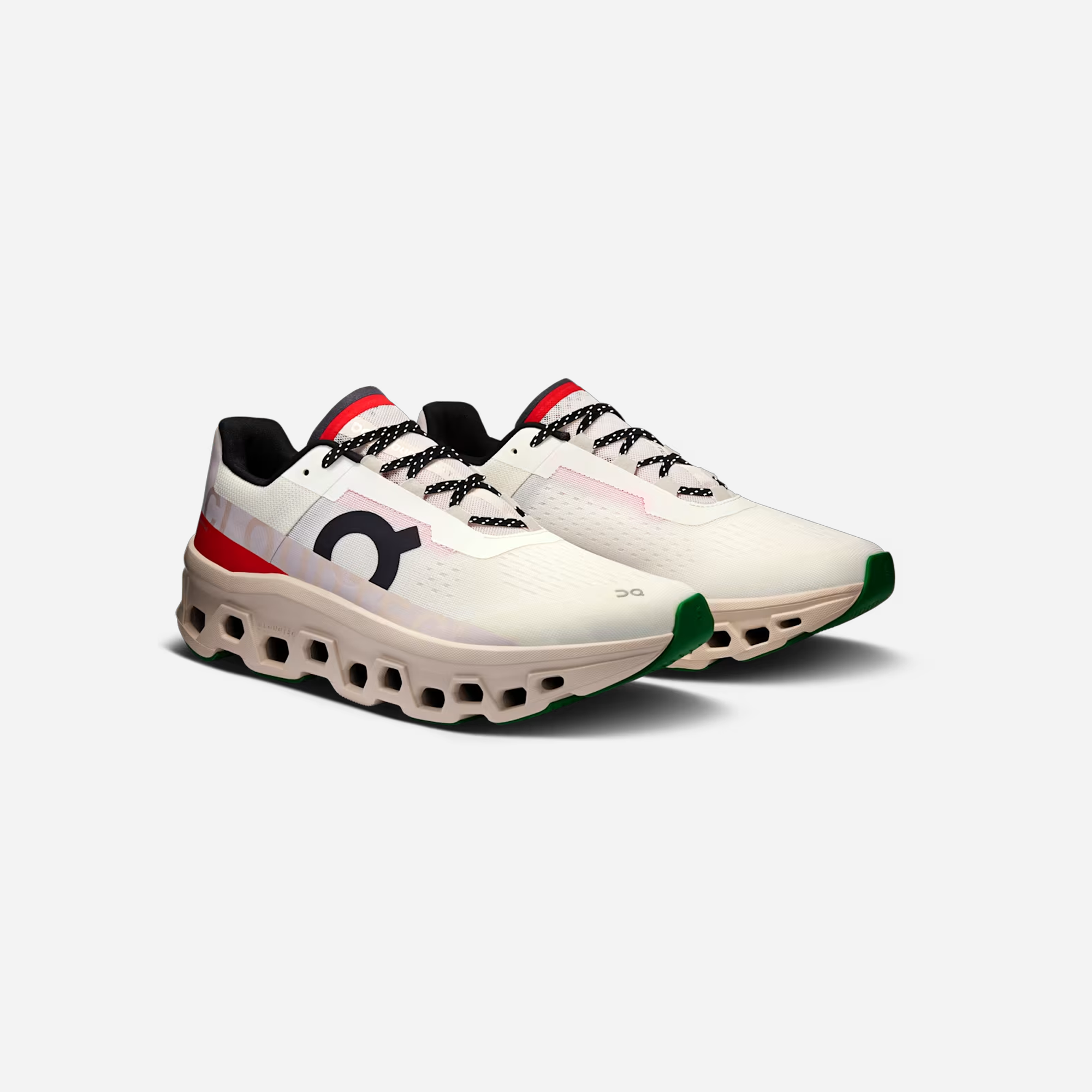 ON Running Cloudmonster Ivory Pearl combines innovative cushioning technology with sleek aesthetics for dedicated runners. CloudTec platform delivers exceptional energy return and impact protection. Lightweight construction ensures comfort during training runs and competitive events with premium breathable design.