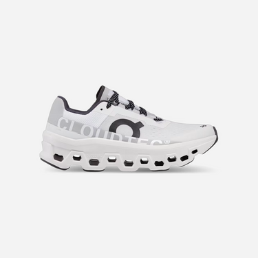 On Running Cloudmonster White Black WMNS delivers responsive cushioning and lightweight performance for women runners. The innovative CloudTec sole provides superior comfort during daily runs while the sleek white and black colorway suits any athletic wardrobe perfectly.