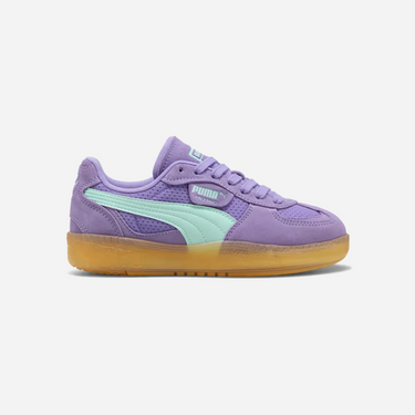 Puma Palermo Moda Vintage Lavender Alert Mint Melt WMNS sneakers combine retro style with modern comfort. These women's shoes feature a classic silhouette in eye-catching pastel colors perfect for casual wear and everyday fashion.