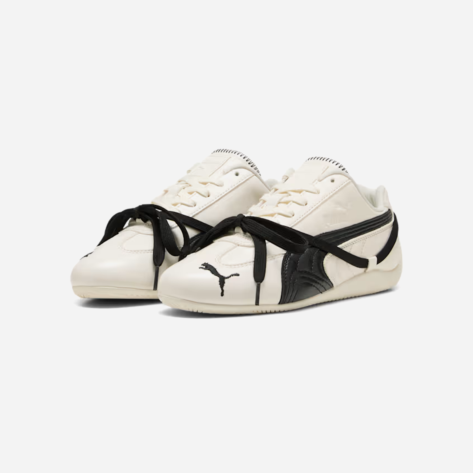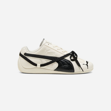 The Puma Speedcat LEA x ROSE White Black sneaker is a collaboration blending motorsport heritage with modern style. Enjoy the sleek leather construction and low profile design perfect for everyday wear. This exclusive shoe features classic color blocking making it a versatile addition to any wardrobe. A must have for sneaker enthusiasts seeking comfort and street appeal.