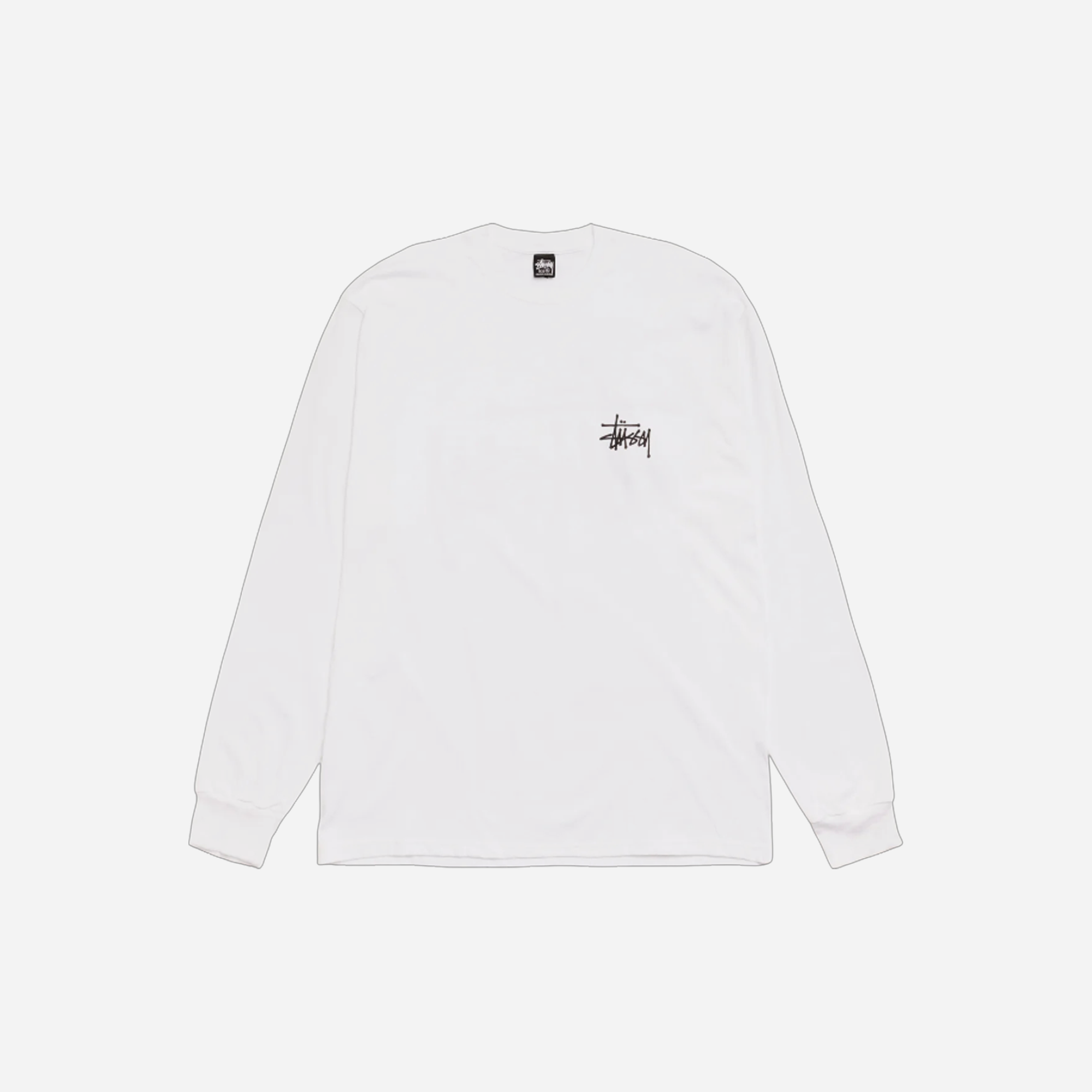 The Stussy Basic Long Sleeve Tee in crisp white is an essential wardrobe staple. This comfortable long sleeve t-shirt features a clean design with subtle Stussy branding, offering timeless streetwear style. Crafted from quality cotton, it provides a relaxed fit perfect for layering or wearing on its own, ensuring versatility and lasting comfort.