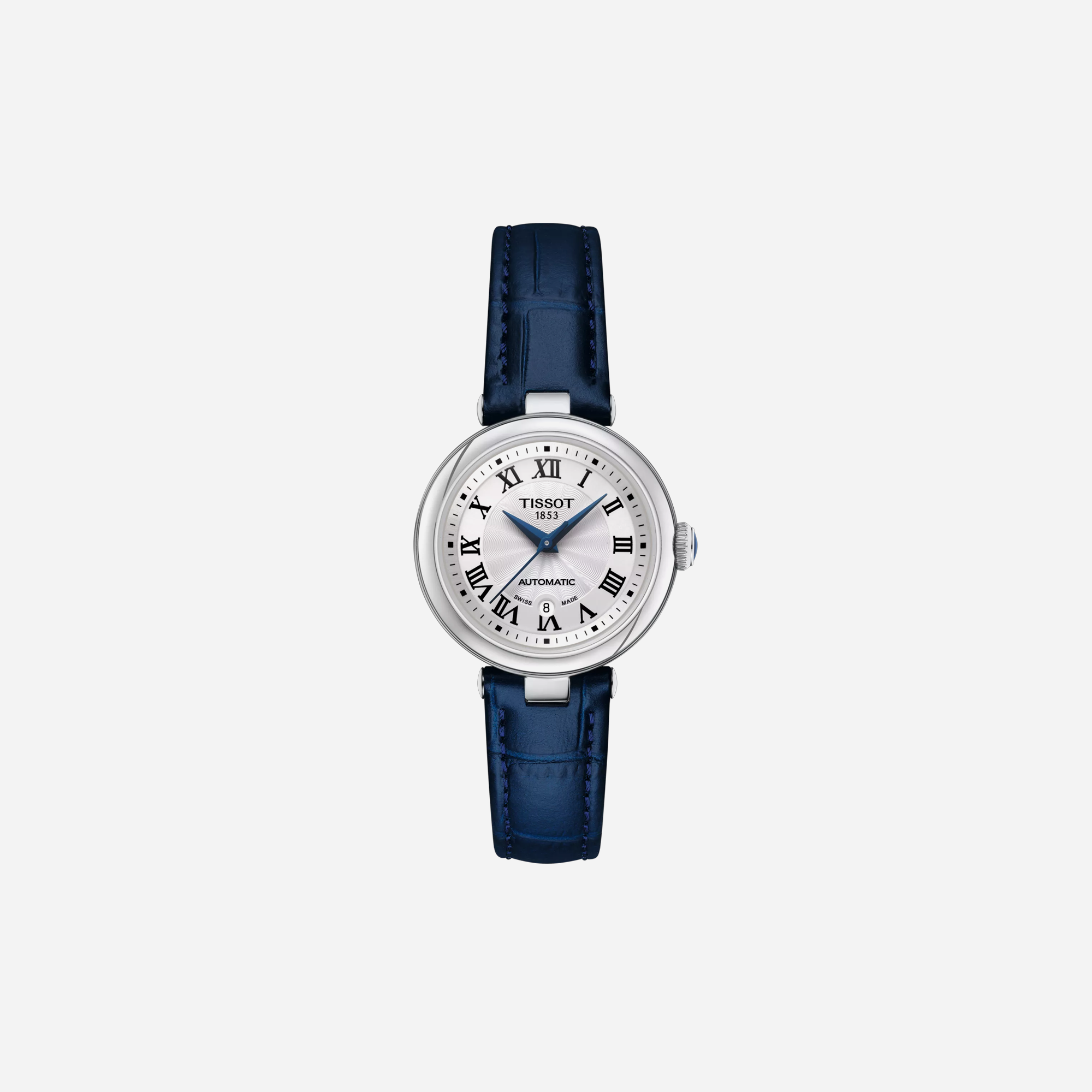 The Tissot Bellissima Automatic watch for women features a stunning blue dial and an elegant leather strap. This timepiece blends Swiss precision with sophisticated design, making it a perfect accessory for any occasion. Experience luxury and reliability with this beautiful Tissot automatic watch.