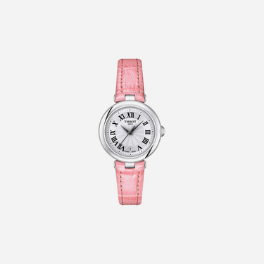Tissot Bellissima Small Lady watch features a 26mm silver stainless steel case with elegant pink strap. Swiss precision craftsmanship meets feminine design. Perfect for everyday wear and special occasions. Timeless luxury timepiece for the modern woman seeking sophistication and reliability.