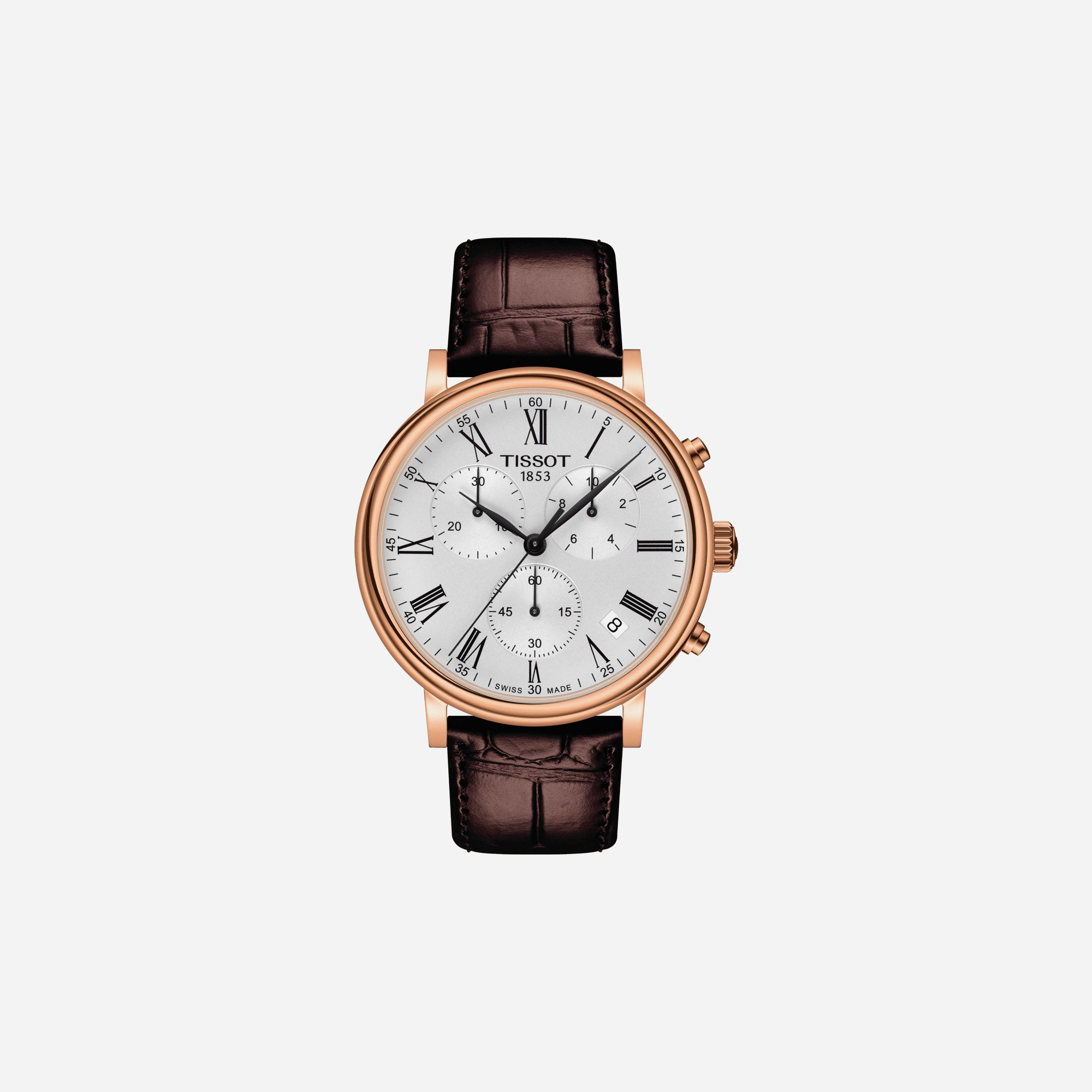 The Tissot Carson Premium Chronograph features a striking leaf dial and a rich brown leather strap. This elegant 41mm watch is a luxurious and sophisticated timepiece perfect for any occasion. Shop this Tissot Carson watch with its distinctive style and impeccable Swiss craftsmanship today.