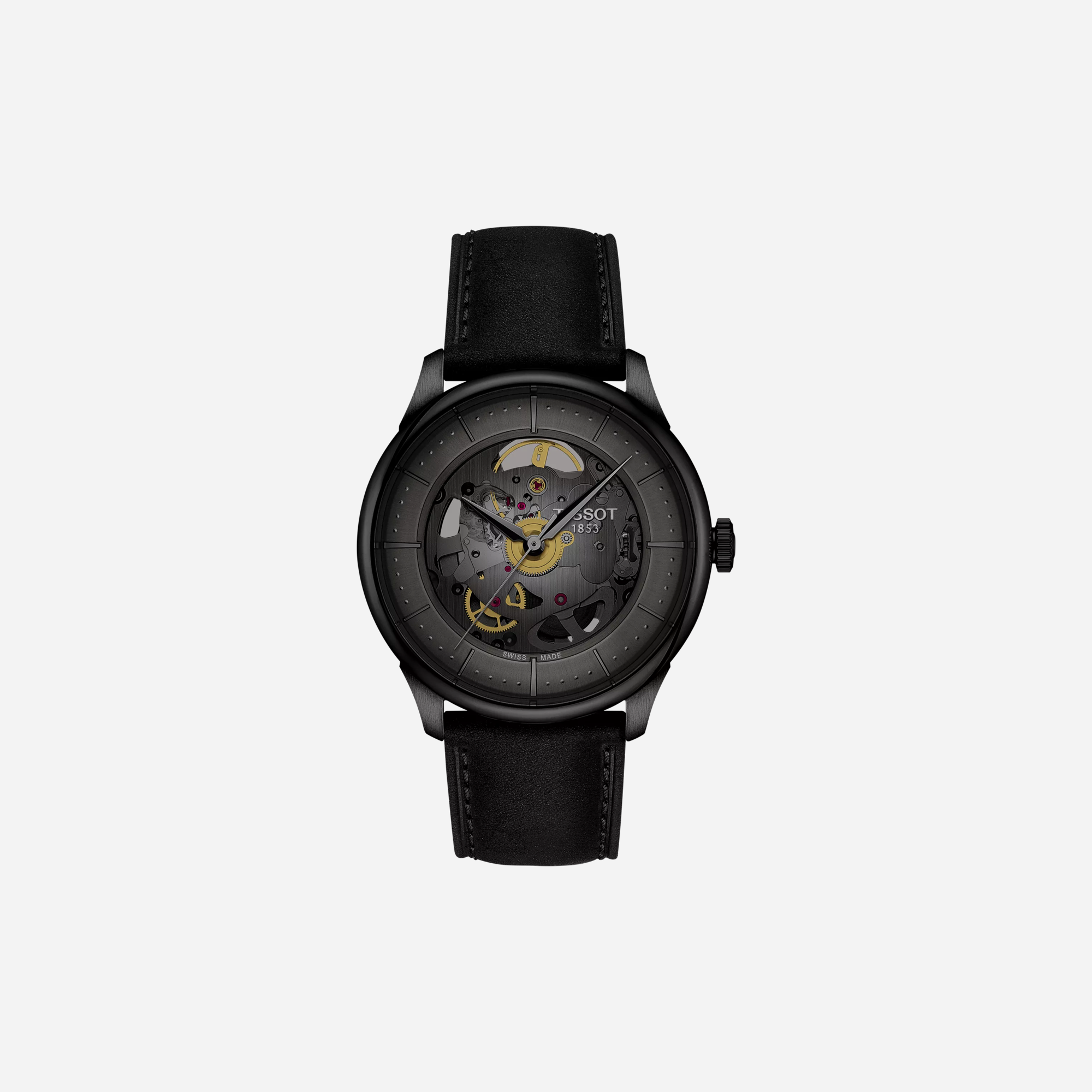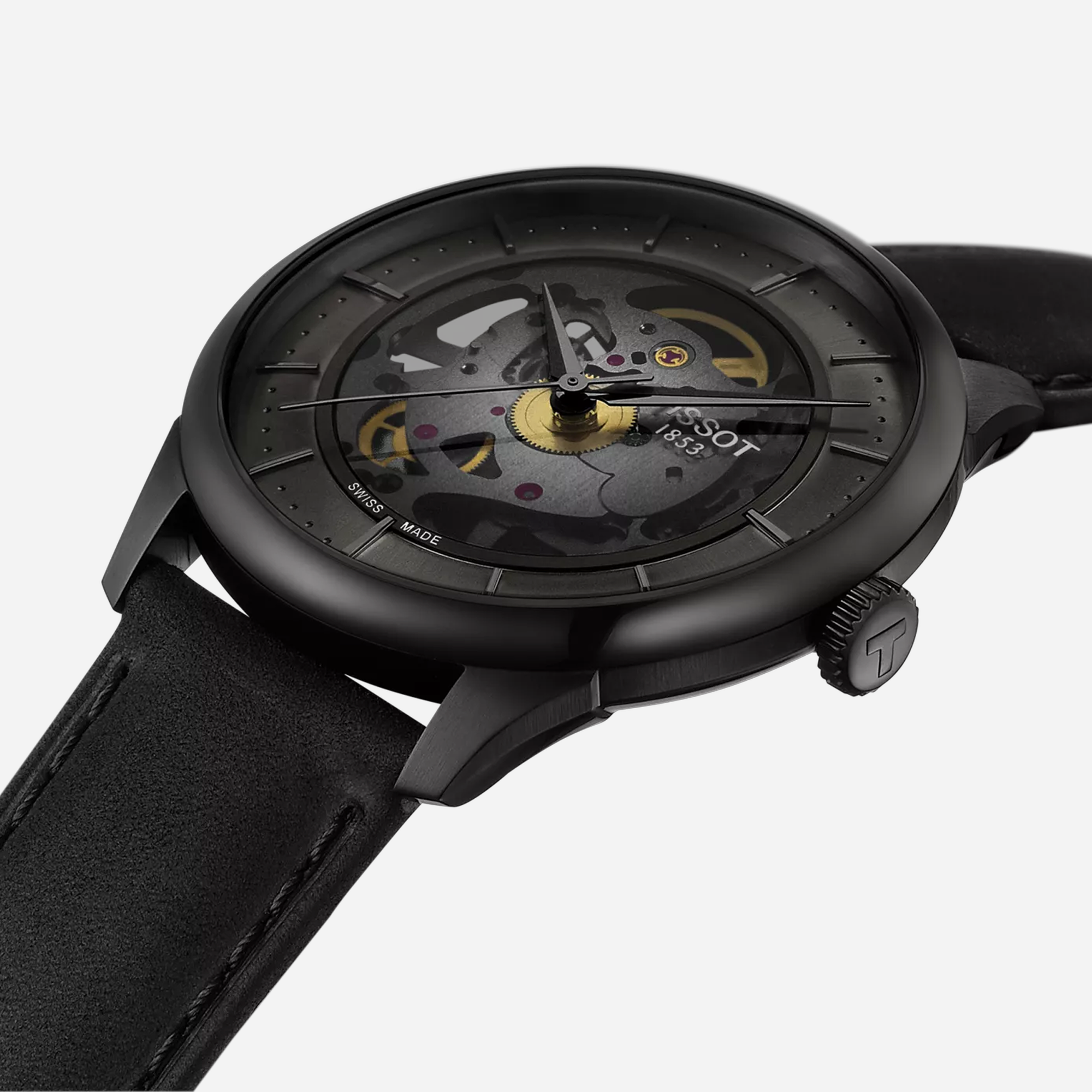 Tissot Chemin Des Tourelles Skeleton Alpha Dial Black Leather Strap Watch
