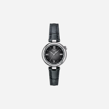 The Tissot Desir watch features a sophisticated leaf dial design and a sleek grey leather strap perfect for women seeking elegant wristwear. This fashionable timepiece combines Tissot's renowned quality with a modern aesthetic making it an excellent addition to any collection.